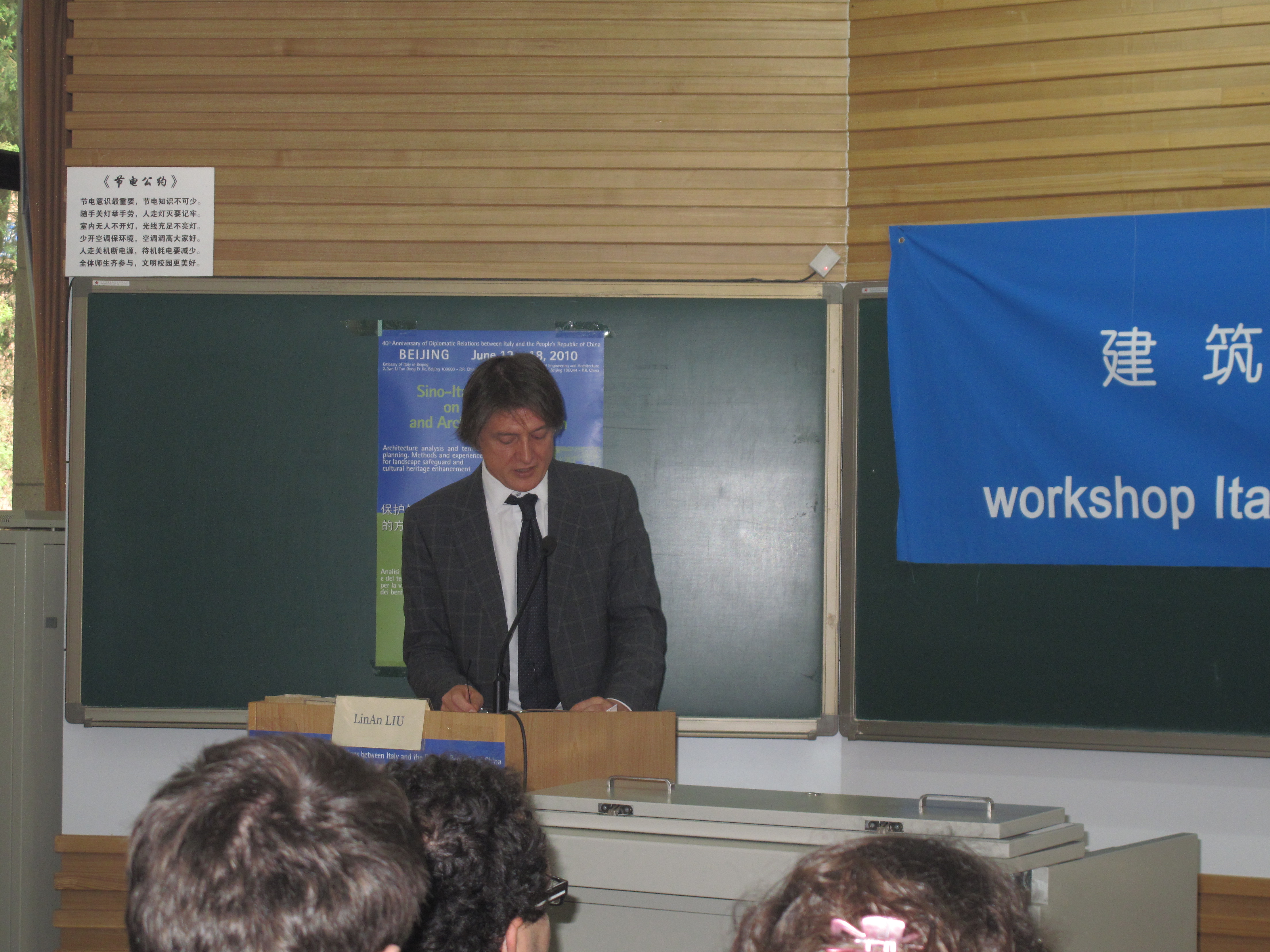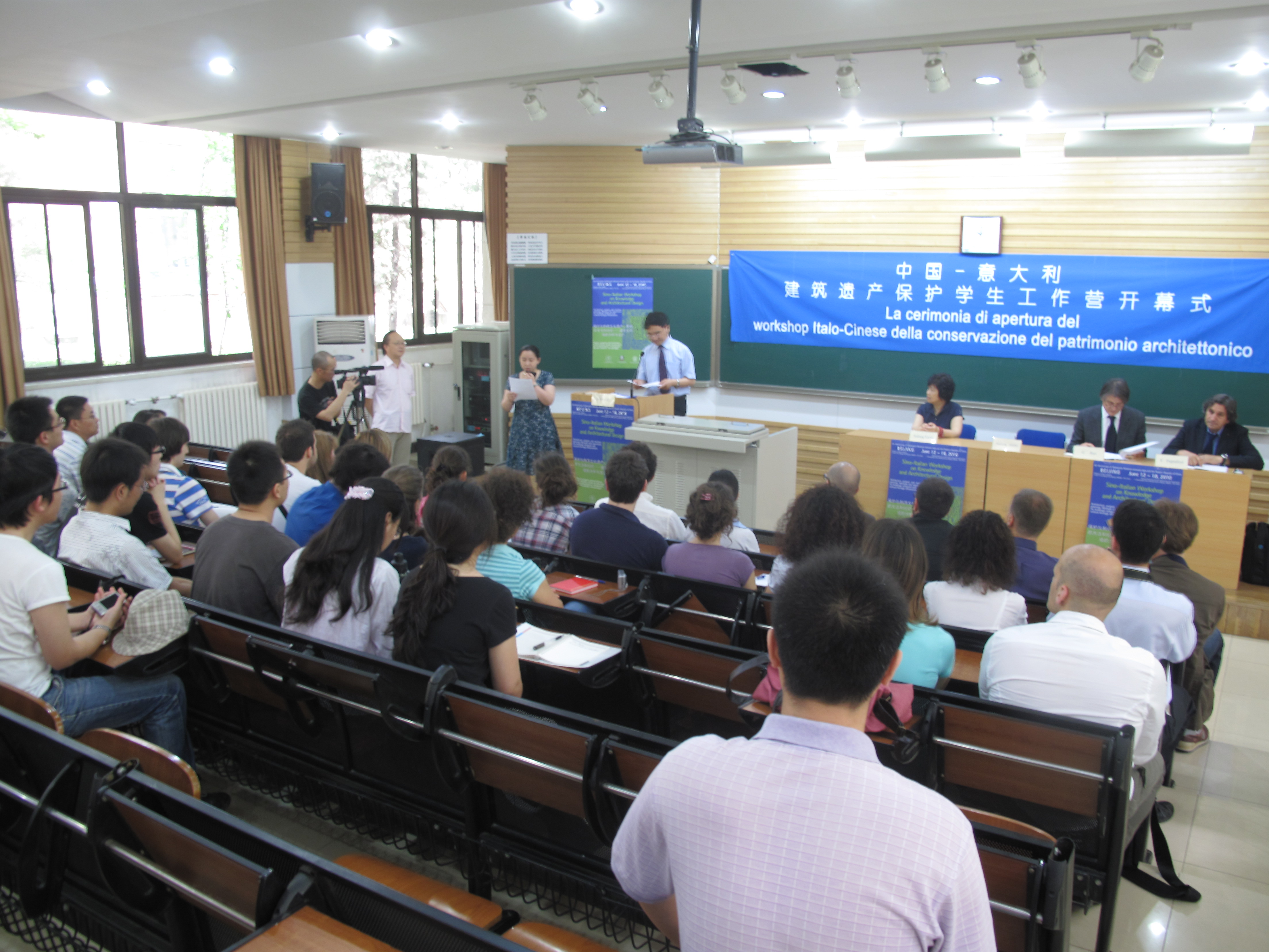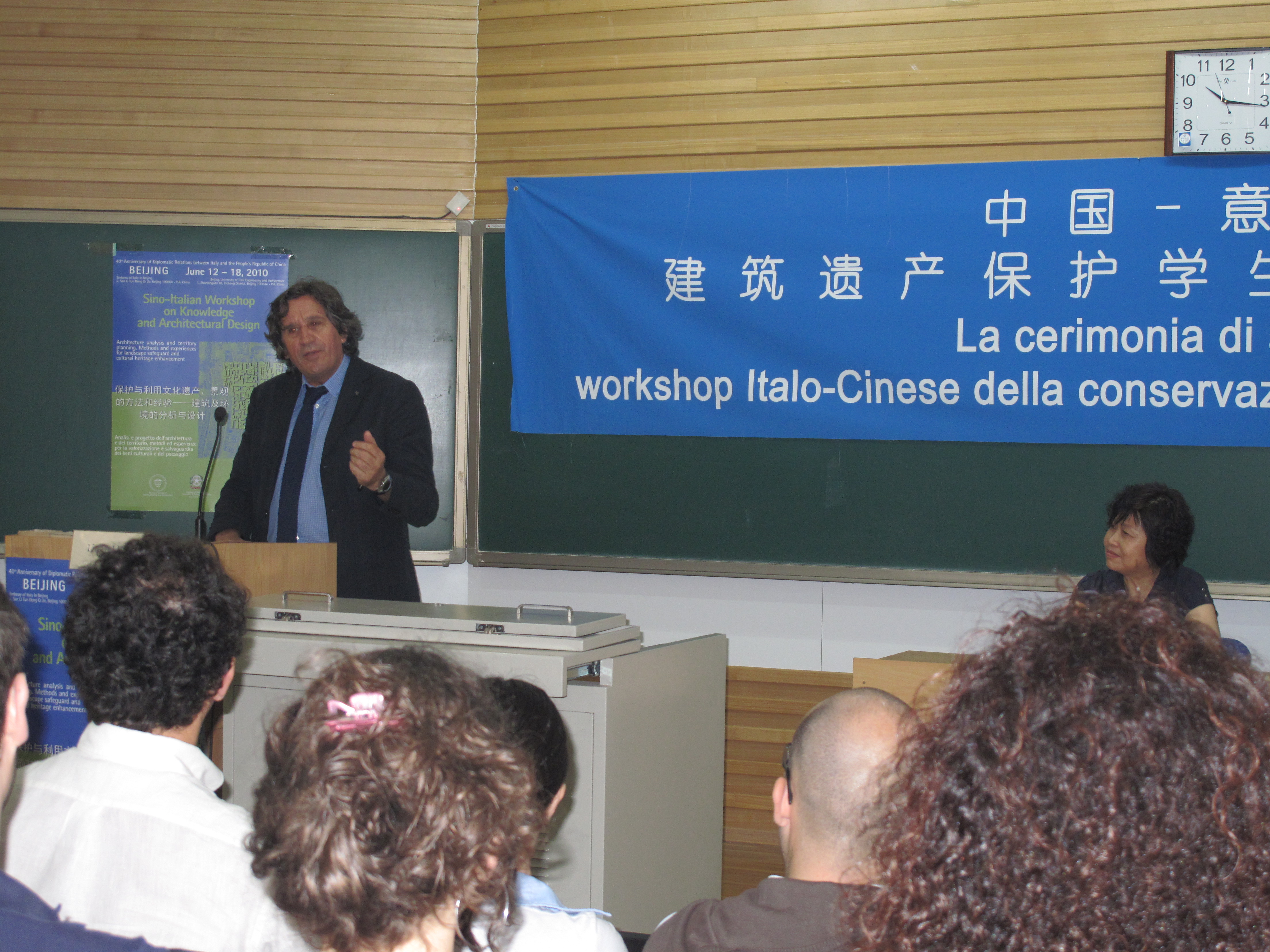 此次工作营活动的开闭幕式分别在我校和意大利大使馆进行,校长郑文堂教授、意大利使馆的大使谢萨先生和参赞拉奥先生、马尔凯大学建筑系系主任普奇亚罗尼教授和努努影视
