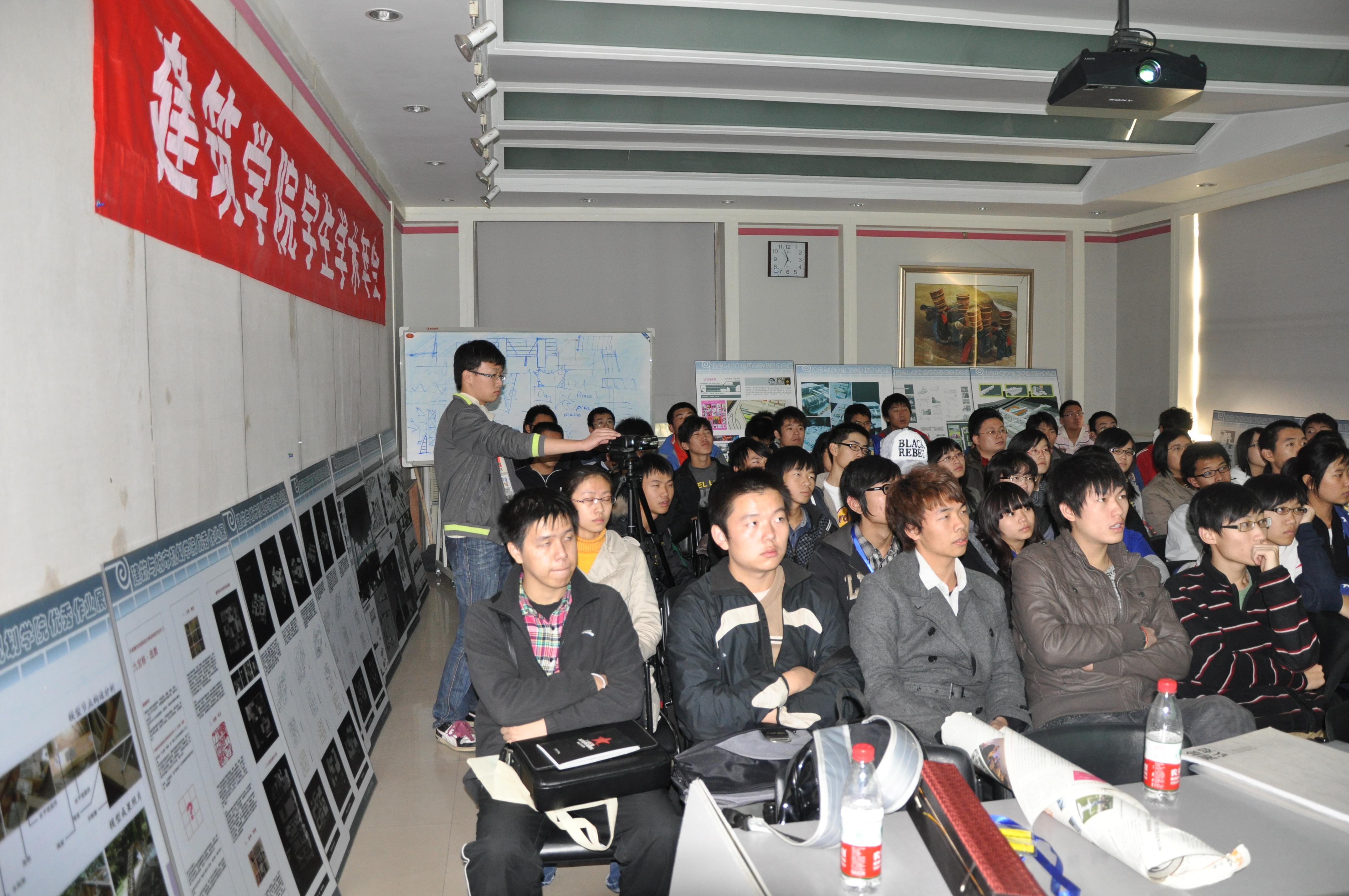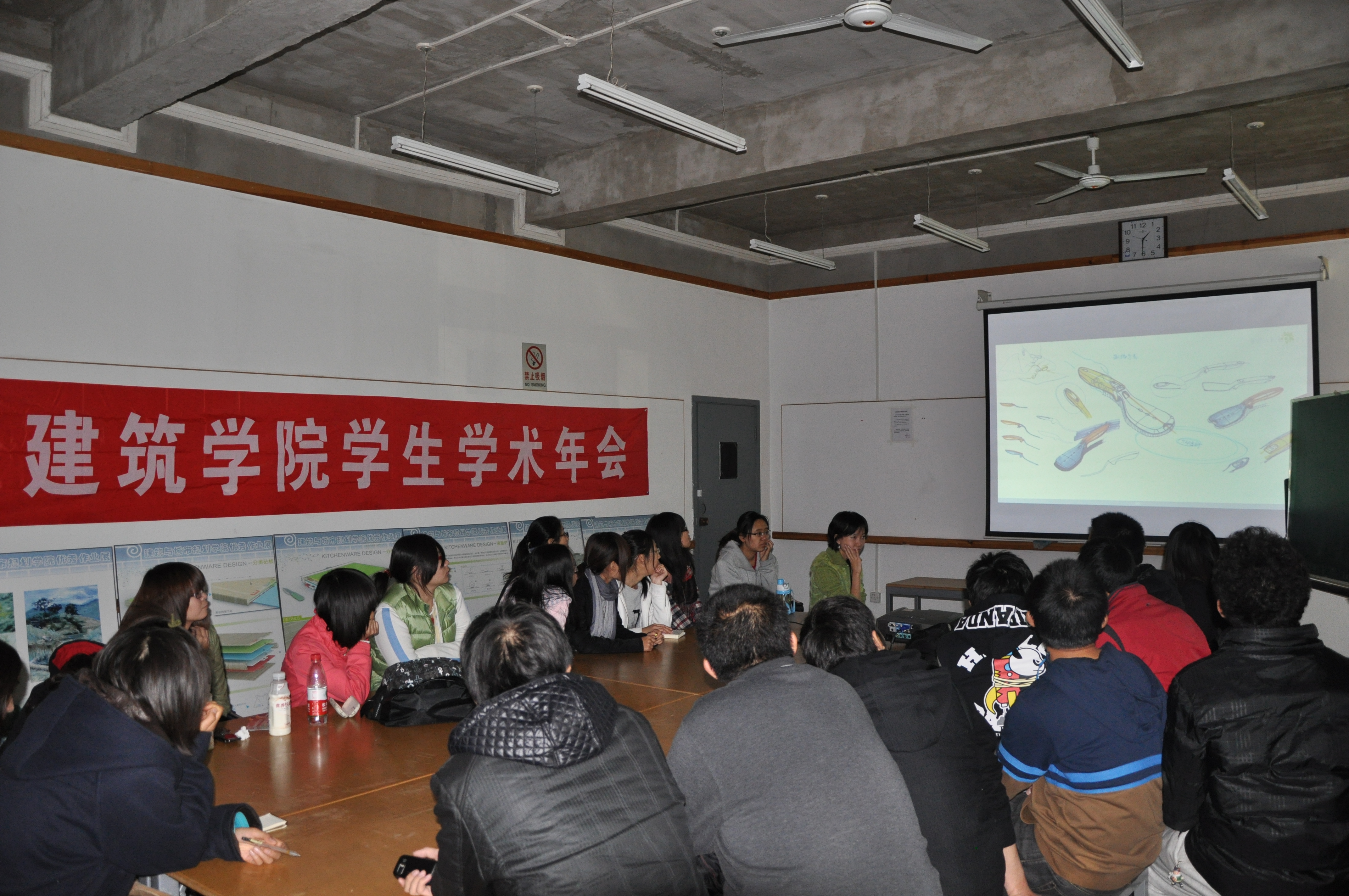 团总支学生会特举办第二届学生学术年会。2010年10月30日(周六)下午2点,学术年会关于建筑学、城市规划、工业设计三个专业校际之间、研究生与本科生之间、本科生高年级与低年级之间的分会场学生学术交流如期教学4号楼举行。近200人参加了本次三个分会场的交流活动,应邀参加交流的还有北京交通大学、中央美术学院、北京工业大学及北方工业大学等高校的30多位同学,我校城市规划系系主任范霄鹏老师也应邀出席了城市规划专业的分会场交流活动。