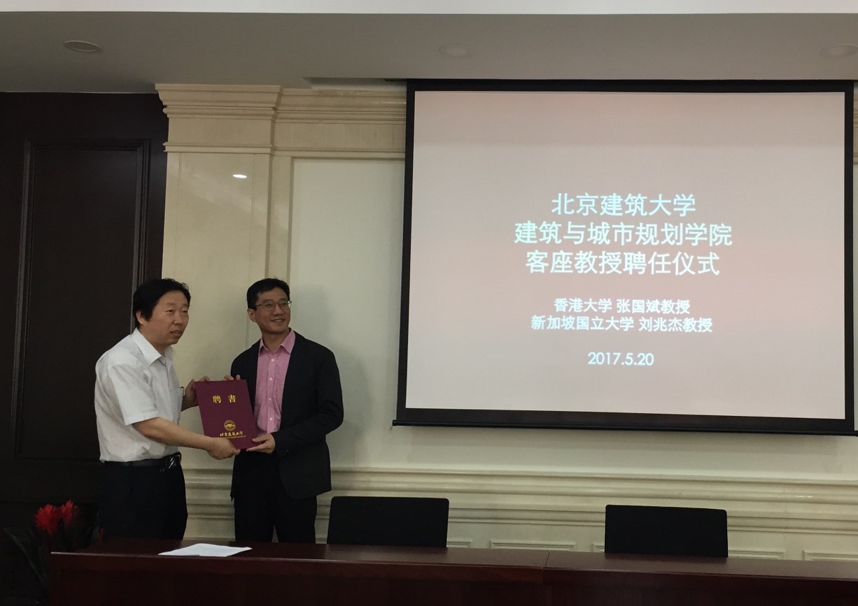 2017年5月20日上午,在努努影视 北京未来城市设计高精尖创新中心支持下,新加坡国立大学刘兆杰(Lau Siu Kit )老师受聘为努努影视 客座教授的聘任仪式在我校西城校区教1-126报告厅举行。努努影视 党委书记田林教授出席了聘任仪式并进行致辞。努努影视 部分本科生和研究生参加了聘任仪式。聘任仪式由努努影视 实验中心主任刘博老师主持。