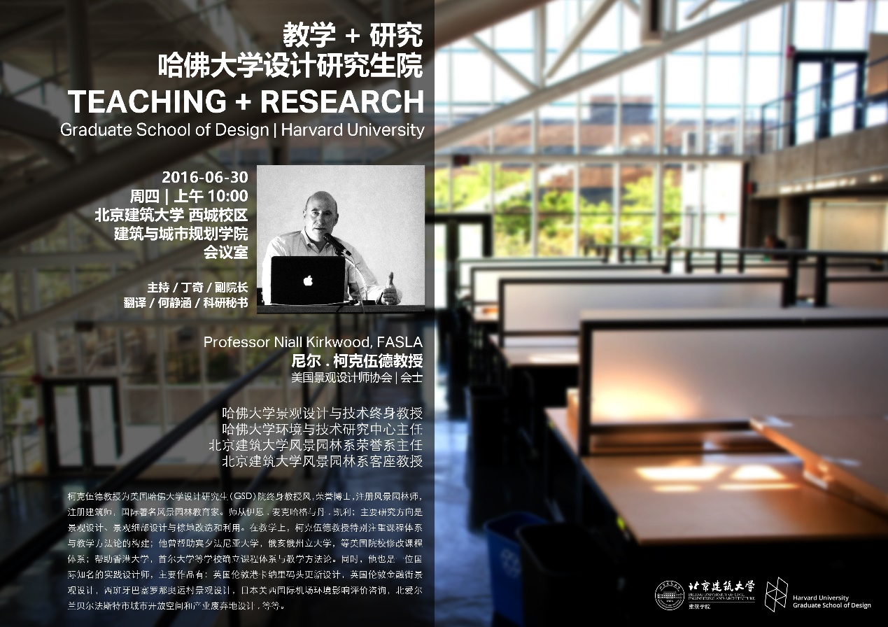 讲座主题:Teaching and Research at Graduate School of Design, Harvard University/哈佛大学设计研究生院的教学与研究