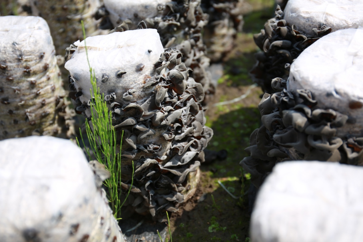 可以看到当代木耳产业可持续,生态的特色,利用废弃的煤渣作为培养基床,灌以当地天然的山泉水,可以在短时间多次生长,多次收获,为当地经济起到推动作用。