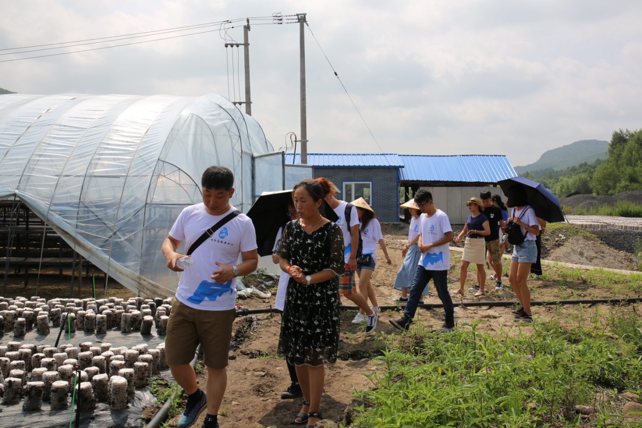 离开兴盛社区之后,实践团队一行来到木耳采摘基地,学习和体验木耳生产和采摘的过程。