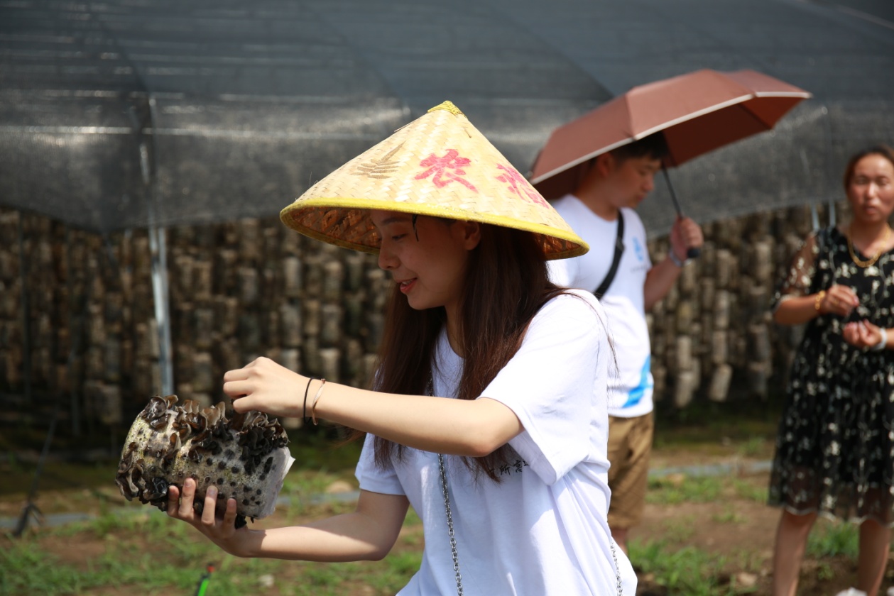 第一次来到木耳采摘基地的师生都兴奋不已,在相关负责人介绍完木耳的培育与晾晒过程后,师生就开始大显身手,身影活跃在采摘基地中。