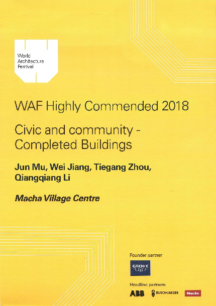 在获得本次WAF奖项之前,该项目已获得国内外的广泛关注,先后获得联合国教科文组织2017年度亚太地区文化遗产保护“创新设计奖”、2018年度WA中国建筑奖设计实验类别佳作奖和住房和城乡建设部田园建筑优秀实例一等奖,并入选《中国建筑学会中国建筑设计作品选2013 - 2017》。