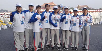 虽然我们只是一个小小的志愿者,但是我们能够现在长安街上为祖国庆生,万分光荣和激动!这将成为我人生中闪闪发光的时刻。祝福我们的祖国繁荣昌盛,中华灿烂辉煌!---张瀚文