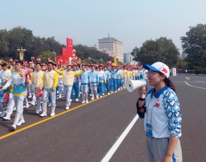 他们是离游行队伍最近的志愿者,迎来、送走一个个方阵,他们的坚守为群众游行队伍保驾护航。让我们来听听他们的感受: