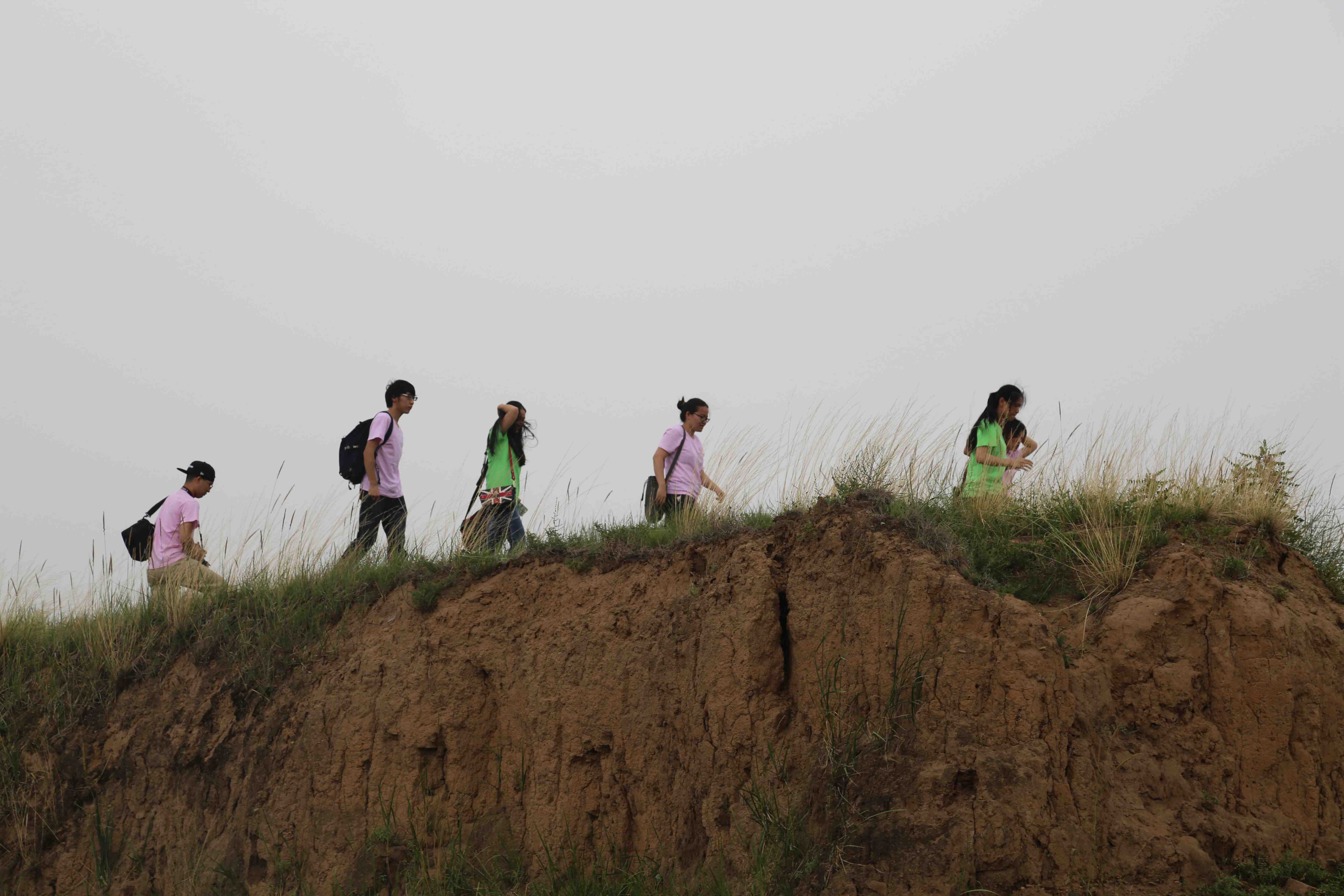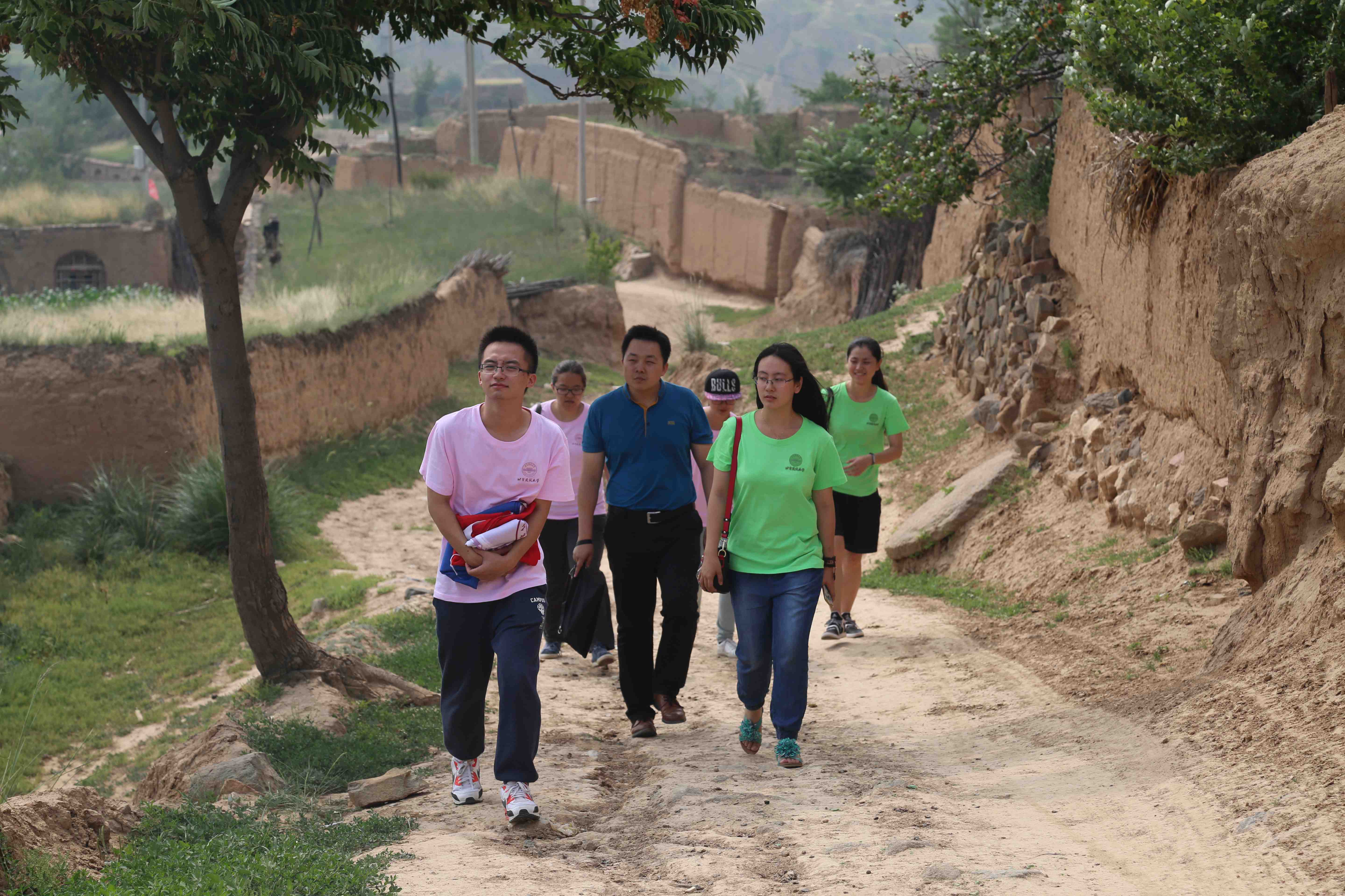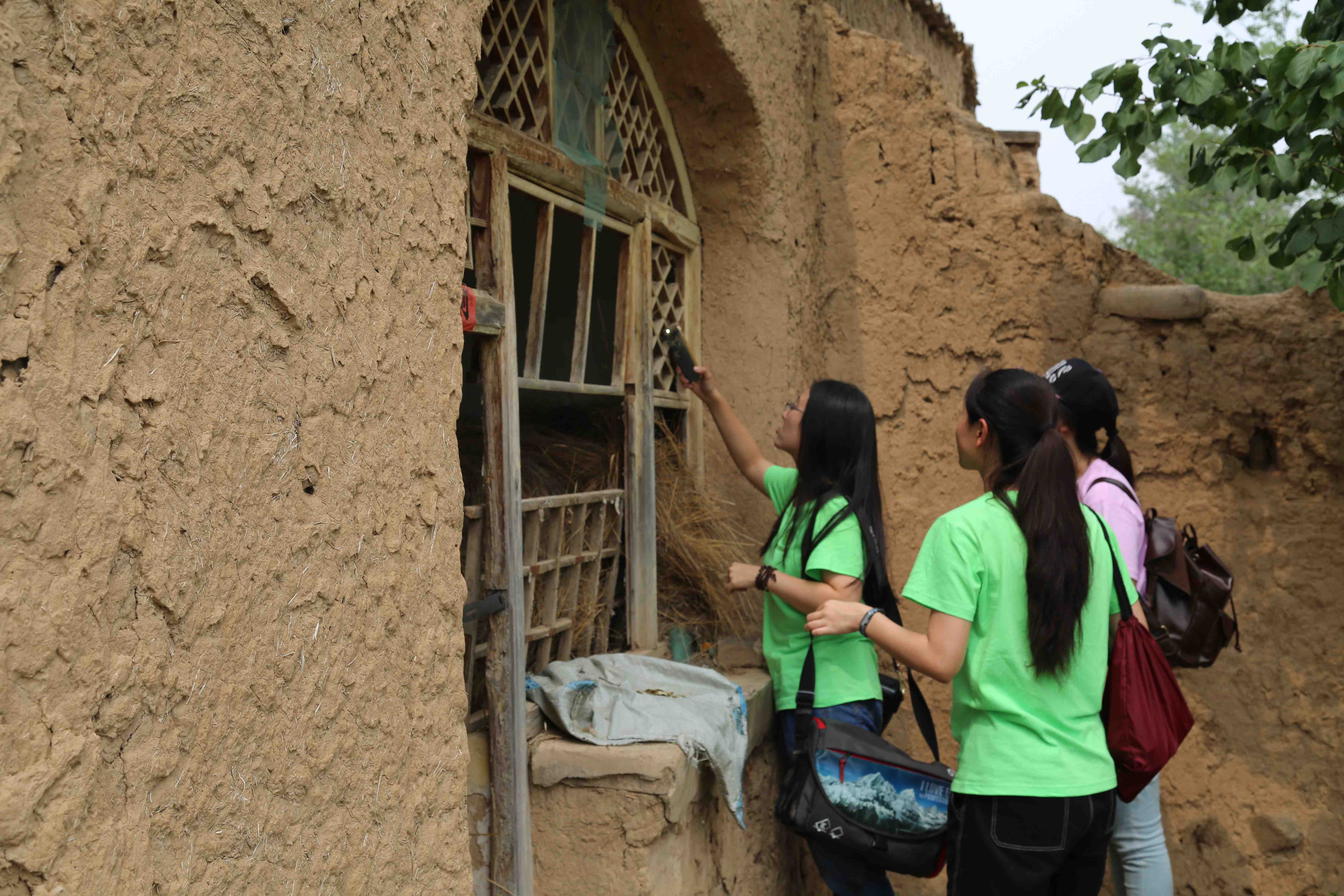 当地村子多建在沟壑两侧,交通颇为不便,为志愿者的调研造成了很大不便,师生们冒着炎炎烈日穿梭在乡间小道上,地面土质坚硬,走在上面嘎吱作响,随处可见用黄黏土搭砌的院墙,废弃的窑屋起伏错落的展现在眼前,有的只剩下断壁残垣,却矗立不倒,金色的阳光照射在土墙上,将一排排碹窑点染得明暗有致,显现出一种残缺荒凉的美。