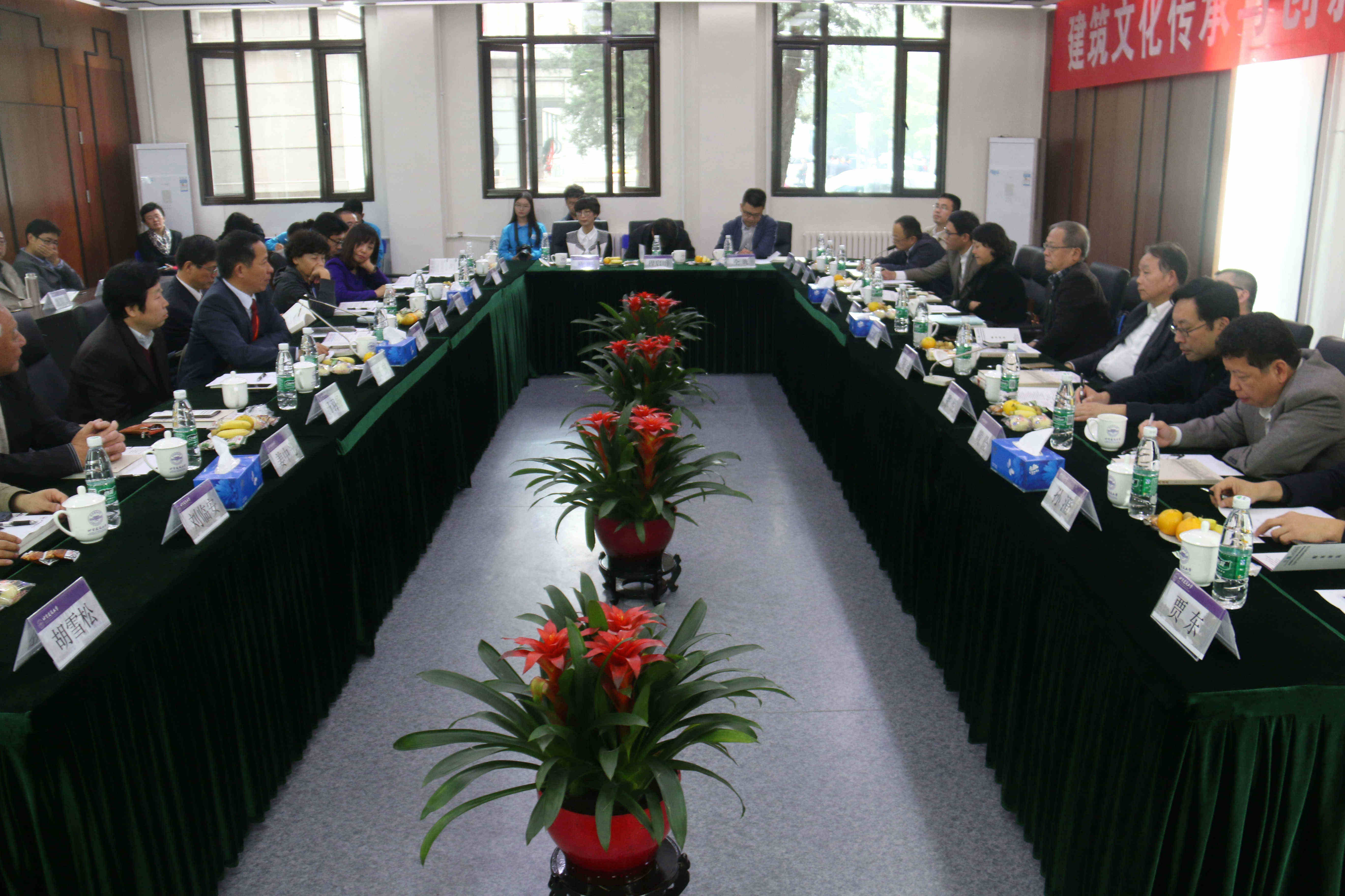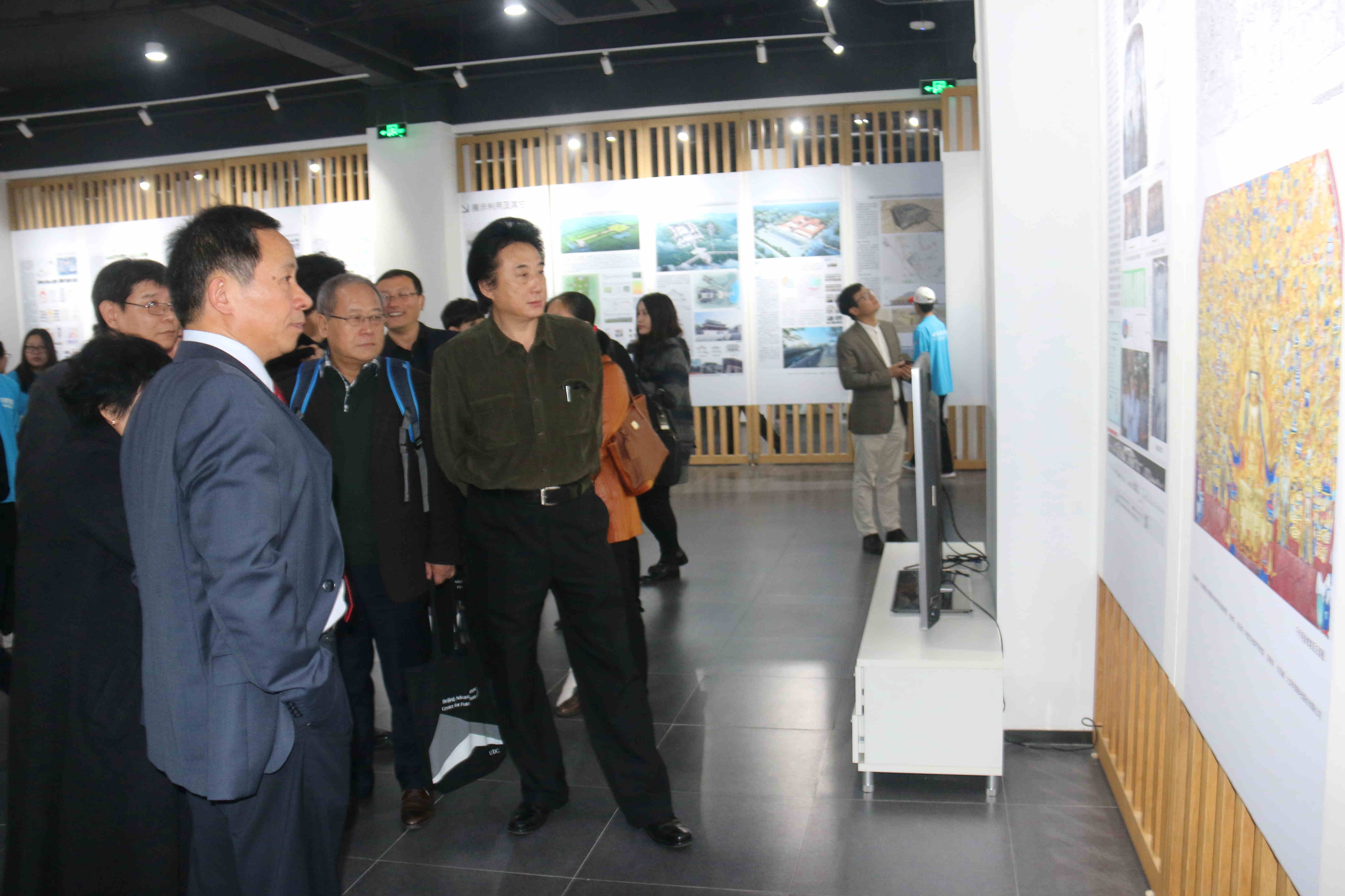 论坛结束后,在副校长张大玉的陪同下,与会专家参观了位于西城区创空间的“保护建筑遗产,传承优秀文化——努努影视 文化遗产保护与传承产学研成果展”,在建筑遗产研究院常务副院长汤羽扬的讲解下,两位院士与各高校院长们依次参观我校师生在建筑遗产保护领域所取得的教学及科研成果,与会专家不时驻足观看,并与学校领导、老师交流。