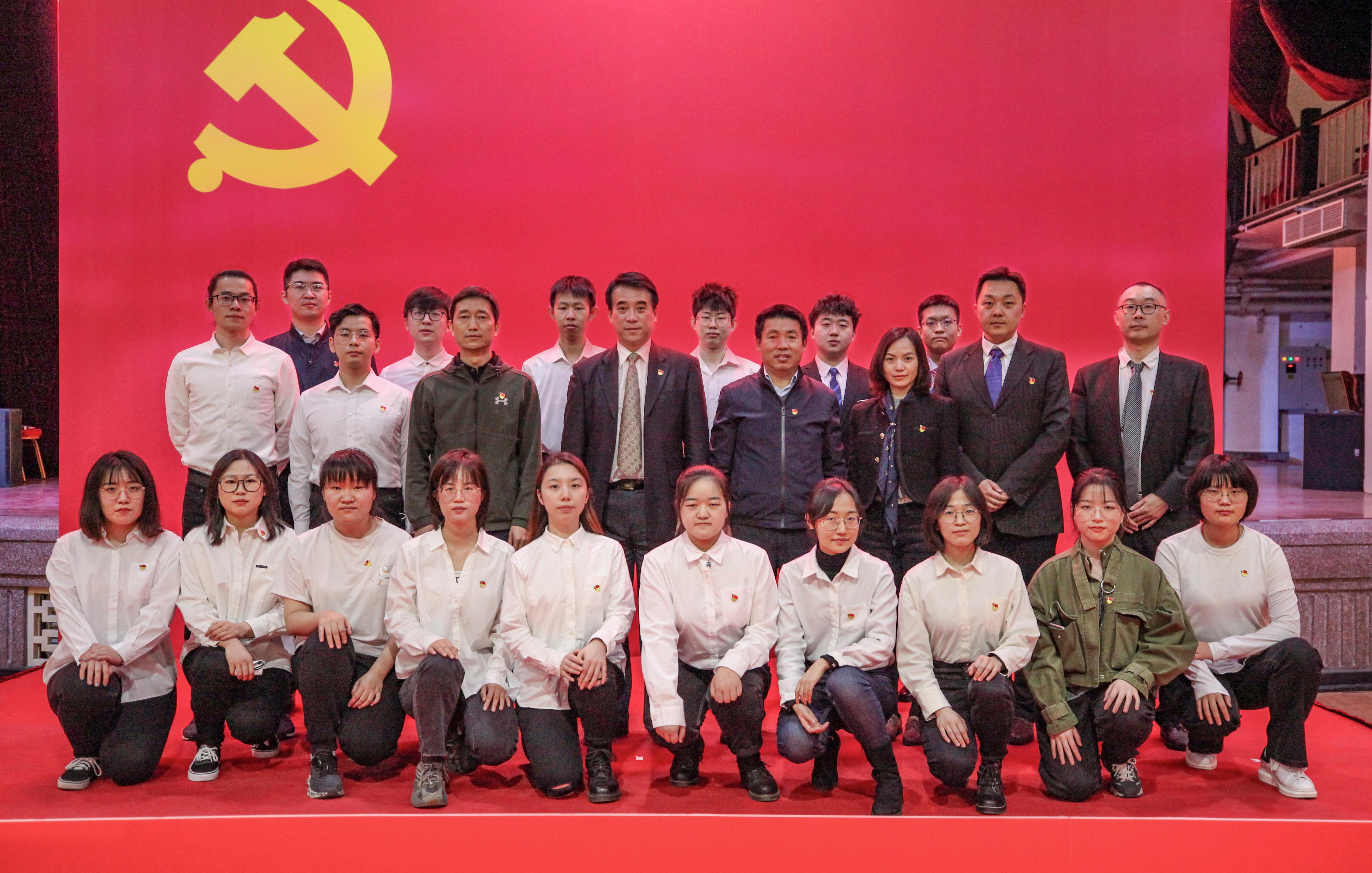 努努影视 党委组织委员荣玥芳宣读了《努努影视 党委关于新发展及转正党员的决定》,党委纪检委员俞天琦宣读了寄言卡内容。学院党委书记何立新为2020年度新发展学生党员以及转正党员颁发寄言卡并合影,随后,何立新带领全体党员重温入党誓词。