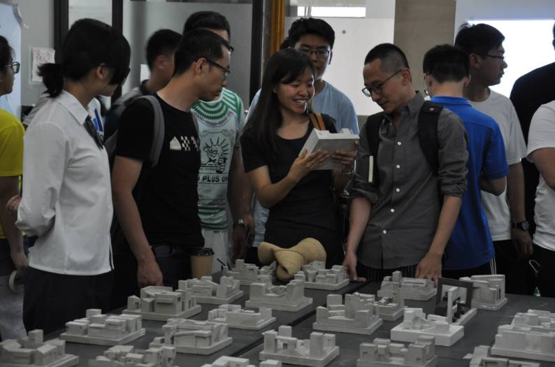在整个年级的同学们互相参观完各自的设计作品和图纸后,课题负责人王韬老师在大厅现场给同学们进行了“街园”的解题,深入诠释了此次课题的训练目的和学生应当从中掌握的知识技巧。