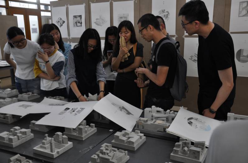 同学们在所有的课程作业中横向比较、对自己的设计思路进行审视,同时又有专业老师指点解惑,对于大一的同学们来说是一次夯实基础的绝佳机会。同时也让学生对营造空间有了更深层次的理解。这样的设计课程既有趣又实用,热闹的场面引来众多学生围观,更是让没能接触到这一课题的高年级同学大呼可惜。