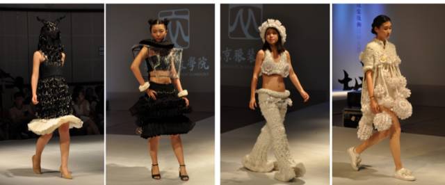 在评委进行评分的过程中,来自北京服装学院的同学也带来了精彩的服装设计展示。之后则是与学生们朝夕相处的建院青年教师带来的T台秀。