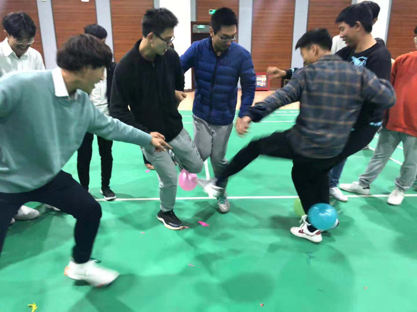 本次趣味运动会总共设置了七个比赛项目:螃蟹背西瓜、双腿夹球接力、四人五足、赶小猪、抛绣球、挤眉弄眼吃饼干和踩气球。每一个比赛都可以锻炼大家的四肢协调能力和团结协作的精神,这不仅是个人的比赛,更是一次对团结力的考验。