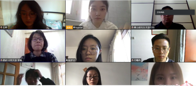 会上,陆冰清按照《努努影视 学生党支部2019-2020(二)工作计划》部署,从本学期学生入党积极分子培养、党员发展、党员再教育及其它党建日常事务工作等方面做了说明,并安排各学生党支部围绕“习近平回信勉励北京大学援鄂医疗全体‘90后’党员”主题开展3月份理论学习。陆冰清对各支部提出要求:一是在入党积极分子培养及党员发展方面,做到高标准严要求,抓牢党员入口与发展关卡,将党员的培养和考核日常化,发展流程规范化,考核标准定量化,跟进时间节点,掌控发展节奏。二是要将理论学习常态化,注重理论学习与社会实践相融合,并提出将专业特点与党建工作相结合的新方向,留出支部自拟活动空间,增进内部支委与党员沟通机会,提升团结发展的凝聚力。三是要求学生党员要发挥好模范带头作用,主动亮明身份,积极响应党员带头志愿活动,在疫情防控期间,继续坚守党员阵地,做到对自己对他人负责。严格学生党员参加党组织活动的考勤制度,及时完成“学习强国”线上学习任务。