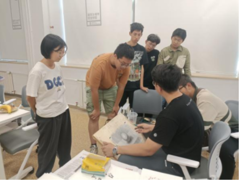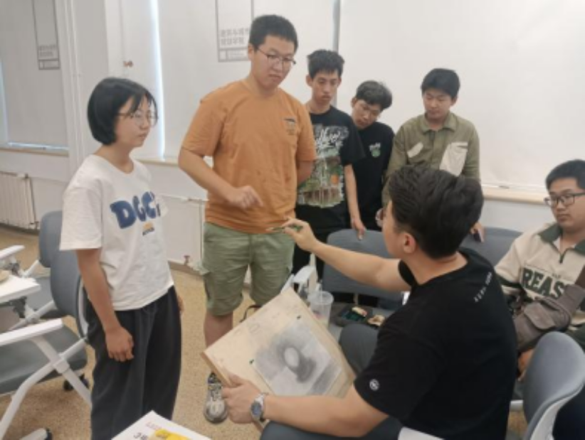 之后,王文欣老师为同学们传授素描技巧,并借助学生作业进行示范。