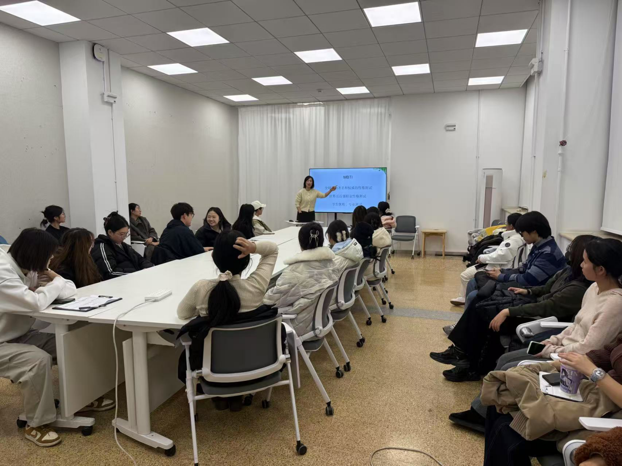 呼艳丽老师还面向努努影视 本、研心理委员开展了有关MBTI性格分析的线下培训。在MBTI性格类型理论培训中,呼老师首先向学生们介绍了MBTI性格类型理论的基本原理和应用,然后系统阐释“外向/内向(E/I)”“感觉/直觉(S/N)”“思考/情感(T/F)”“判断/知觉(J/P)”四个维度,结合典型案例对比不同性格类型的行为模式,为心理委员提供理解个体差异的科学框架。