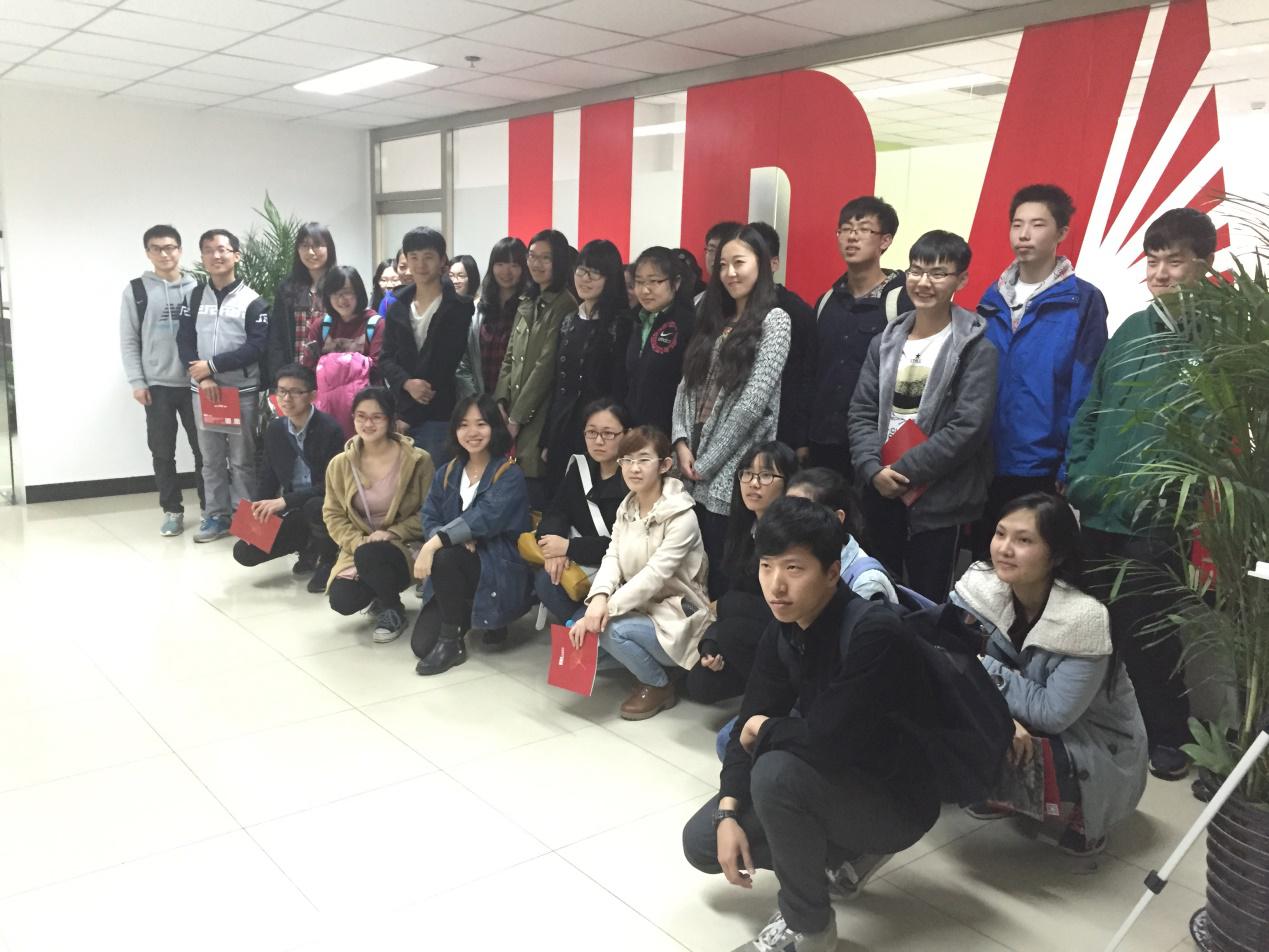 下午两点,同学们搭乘专车到达优地联合公司。公司的运营经理程琳为大家介绍了优地联合的努努影视、工作流程和优秀方案,人力资源经理王媛说明了公司的人事架构、员工招聘及薪酬福利,运营一部经理郭绍锋通过自身经历讲述了他在优地联合8年的工作经验和心得。提问环节中,同学们就方案设计、实习招聘、职业发展等多个方面与几位负责人交流,每个提问的同学还获得了公司提供的礼物。最后,同学们领取了公司为大家精心准备的纪念优盘和企业宣传册,并与几位负责人合影留念,圆满结束了本次活动。