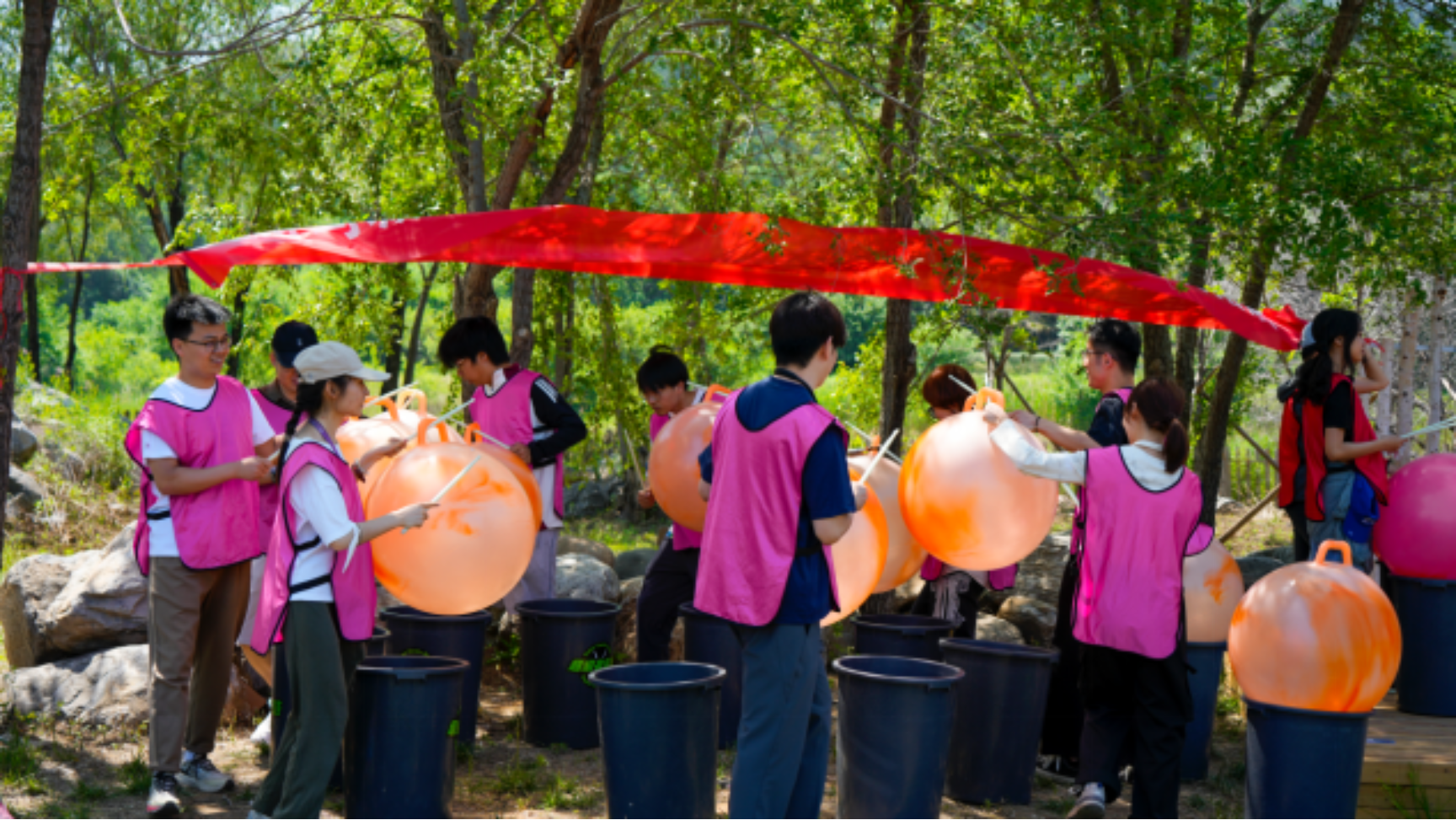 在素拓教练的组织和指导下,同学们迅速投入到紧张而有趣的拓展项目中。首先进行的是《超级有氧鼓》项目体验。在教练的引导下,同学们分组协作、共想队名,随着节奏的起伏,手持鼓棒敲打出激昂的鼓点。这不仅是一场音乐的盛宴,更是一次团队协作的考验。大家在鼓声中释放压力,亲近自然,愉悦身心,迅速拉近了彼此之间的距离。