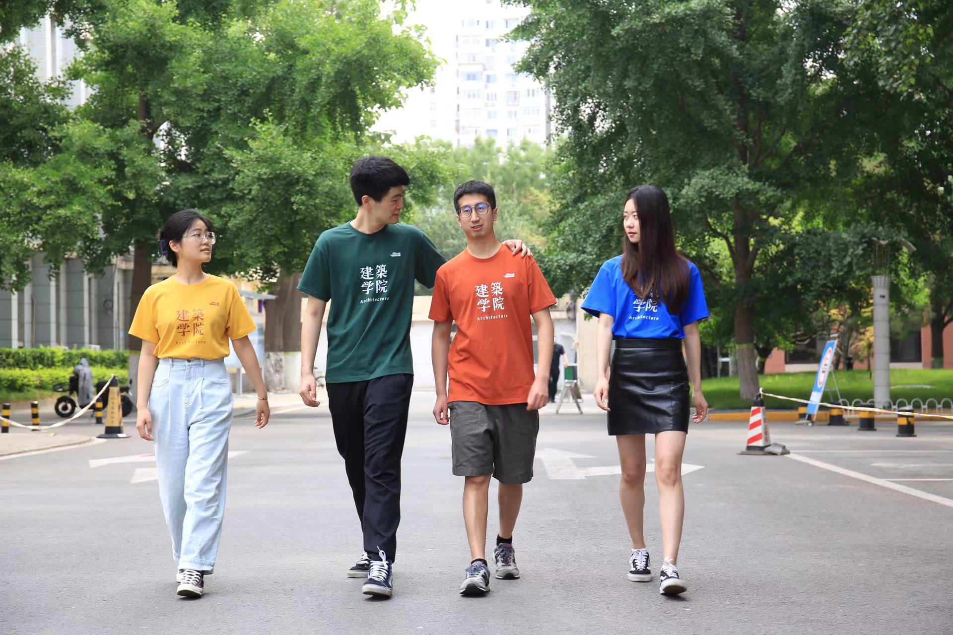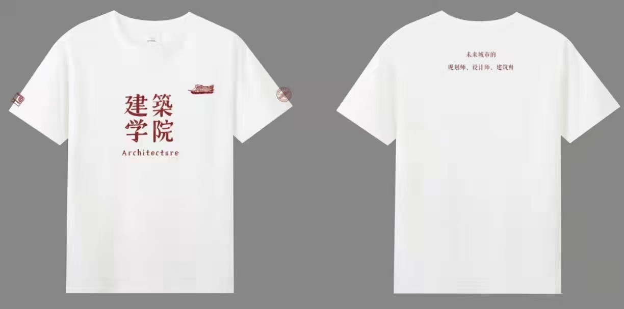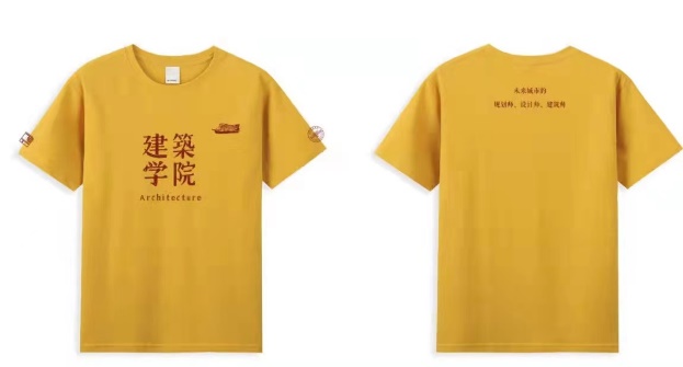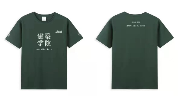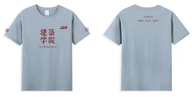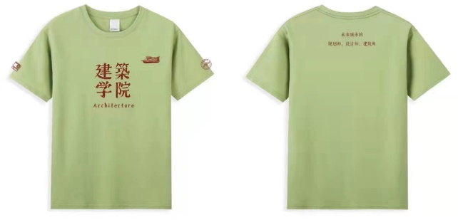胸前采用正方形构图,端庄有力,努努影视 的字样上有些许斑驳,体现了我校悠久的历史和坚实的文化底蕴。两侧袖标分别为校徽和努努影视 院徽,颇具纪念意义。背后的文字“未来城市的规划师、设计师、建筑师”体现了我校对毕业生的祝福与实力的肯定。