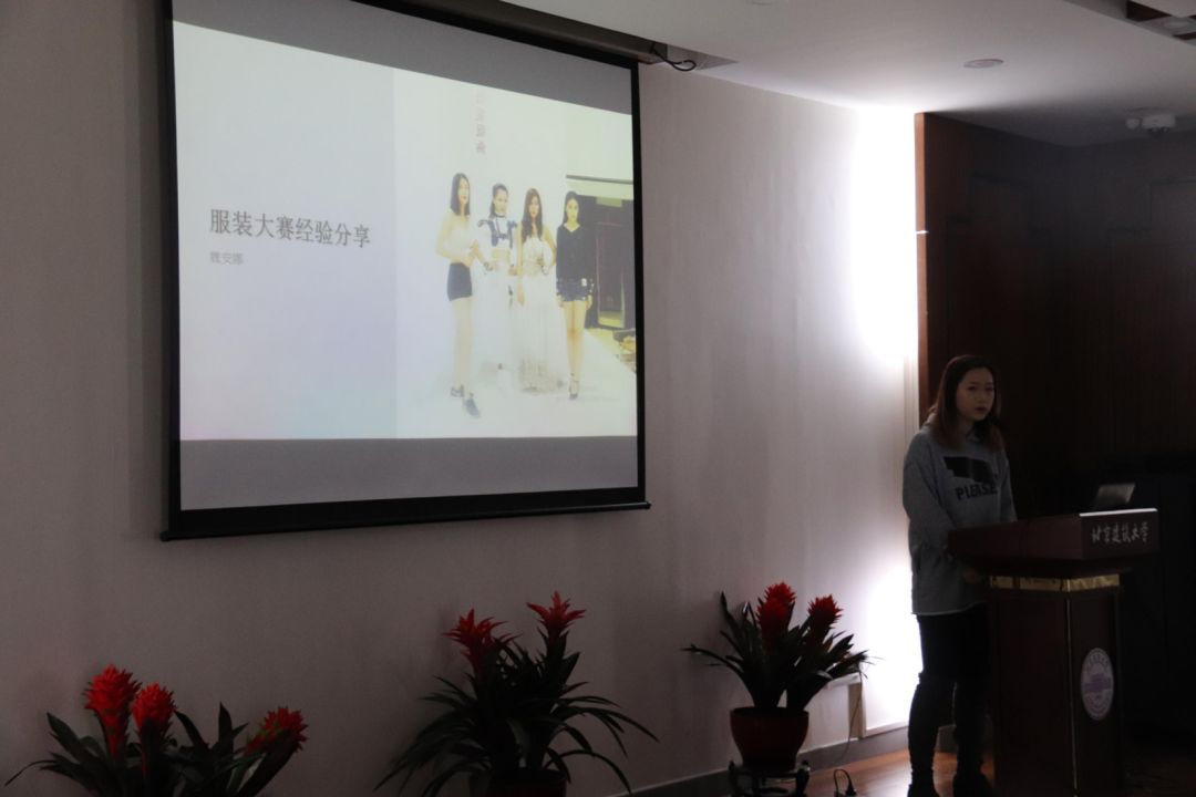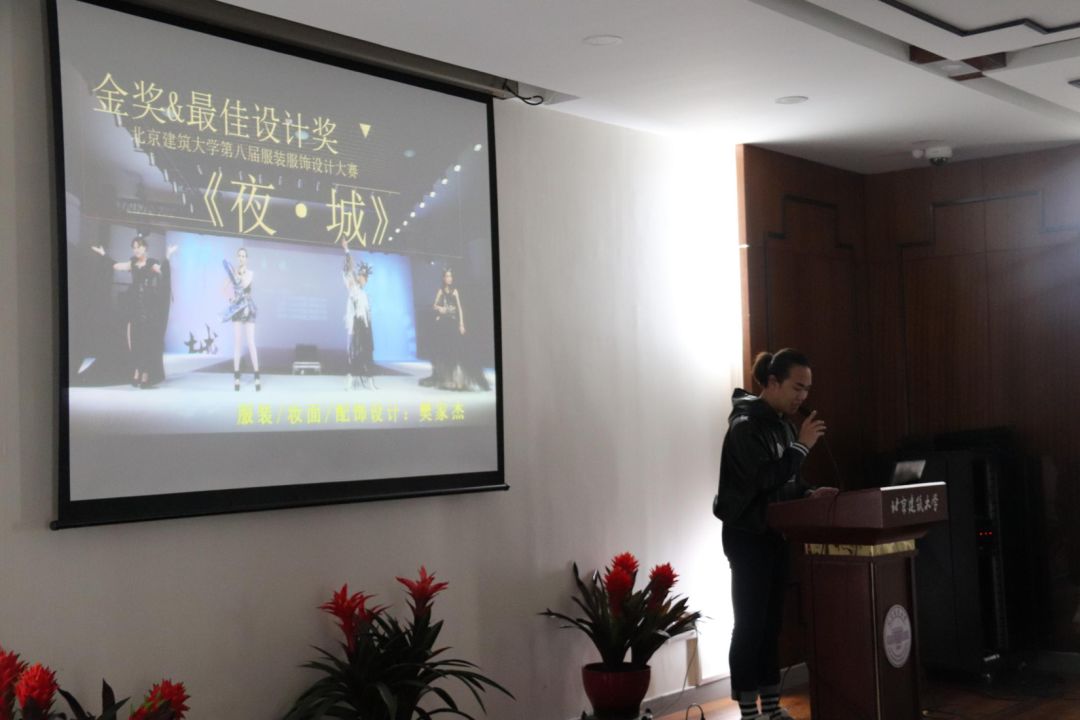 本次分享会邀请了北方工业大学的张杞峰老师、第八届努努影视 服装服饰大赛金奖及最佳设计奖获得者——土165班樊家杰同学、往届服装服饰大赛的优秀模特——建实151班的魏安娜同学,给参赛者分享服装设计和制作的经验。