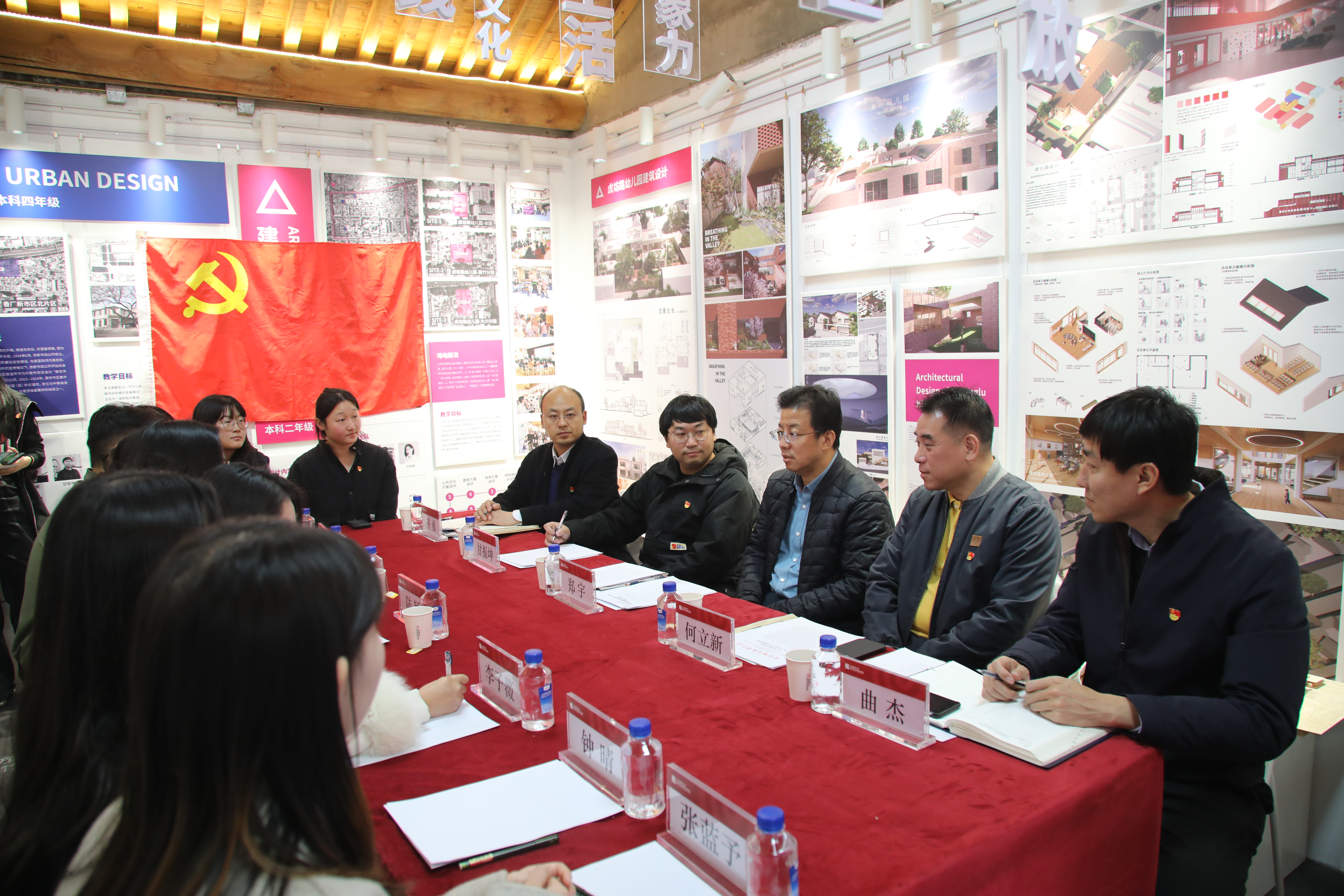 校党委书记郑宇在参观和座谈中对泰安里文化艺术中心的展览给予了充分肯定,对北建大在北京中轴线文化传承中取得的成绩表示欣慰。他谈到,北建大拥有117年的建校历史,始终不忘初心,坚持培养应用型人才,从京师初等工业学堂至今培养了大批脚踏实地、真抓实干、勤勉敬业的的学子,撑起了北京城市发展的美好现状。他和同学们分享了自己基层一线的工作经历,鼓励学生和教师要接地气,深入社区,与老百姓打成一片。学校各部门将一如既往秉持干事创业的作风,为同学搭建成长平台,让同学们成为有文化、有情怀、爱生活的建大人。