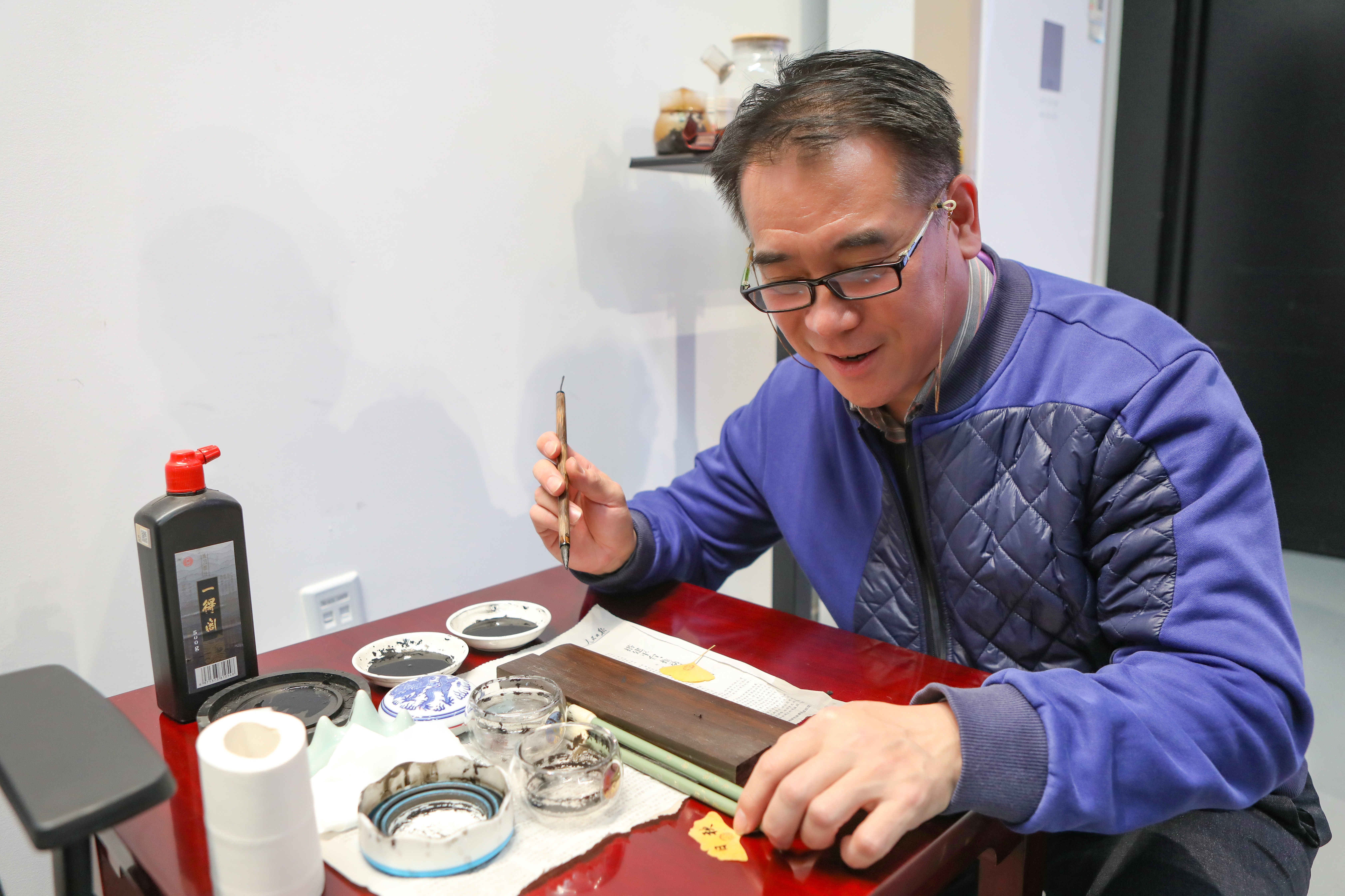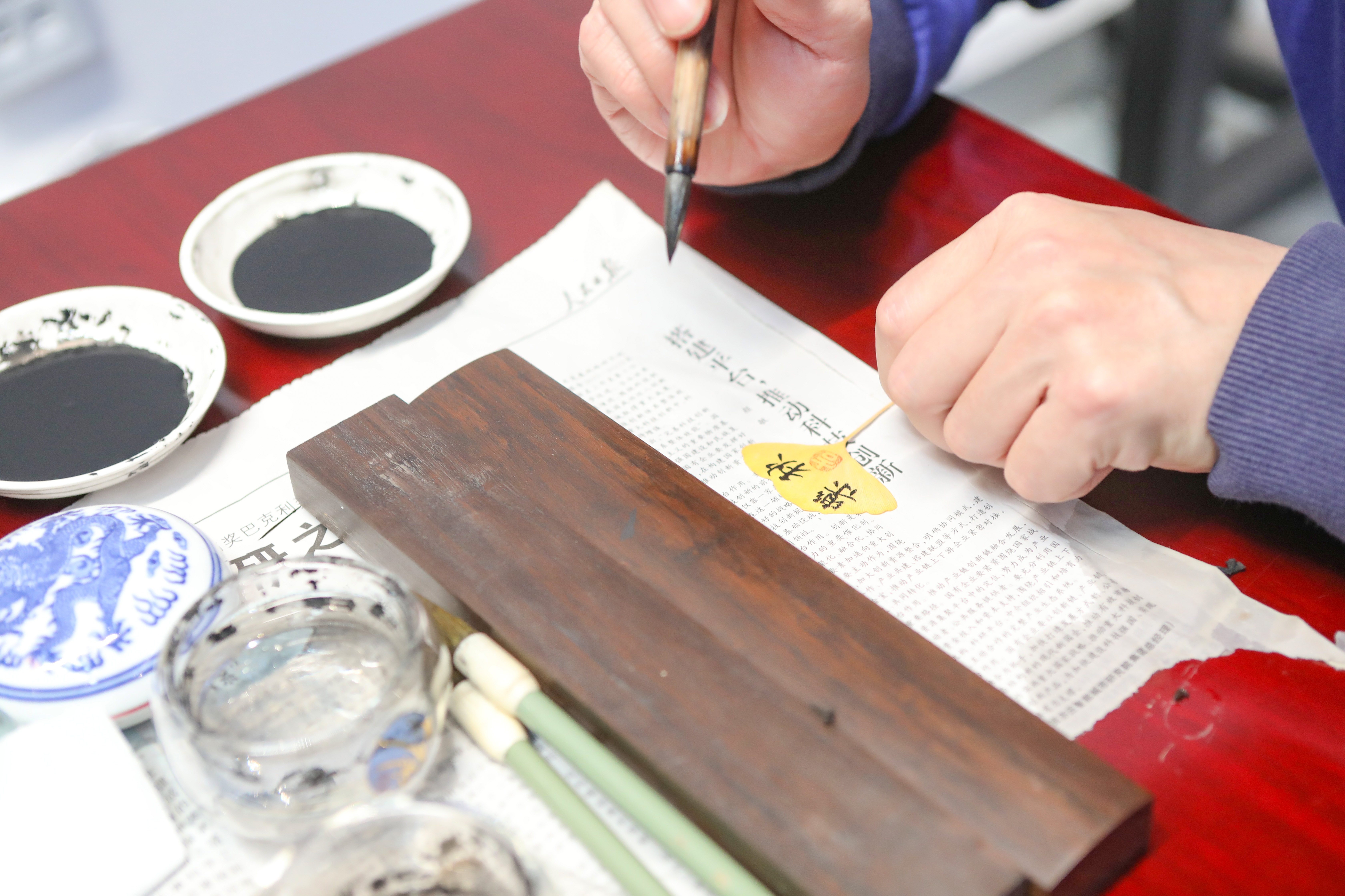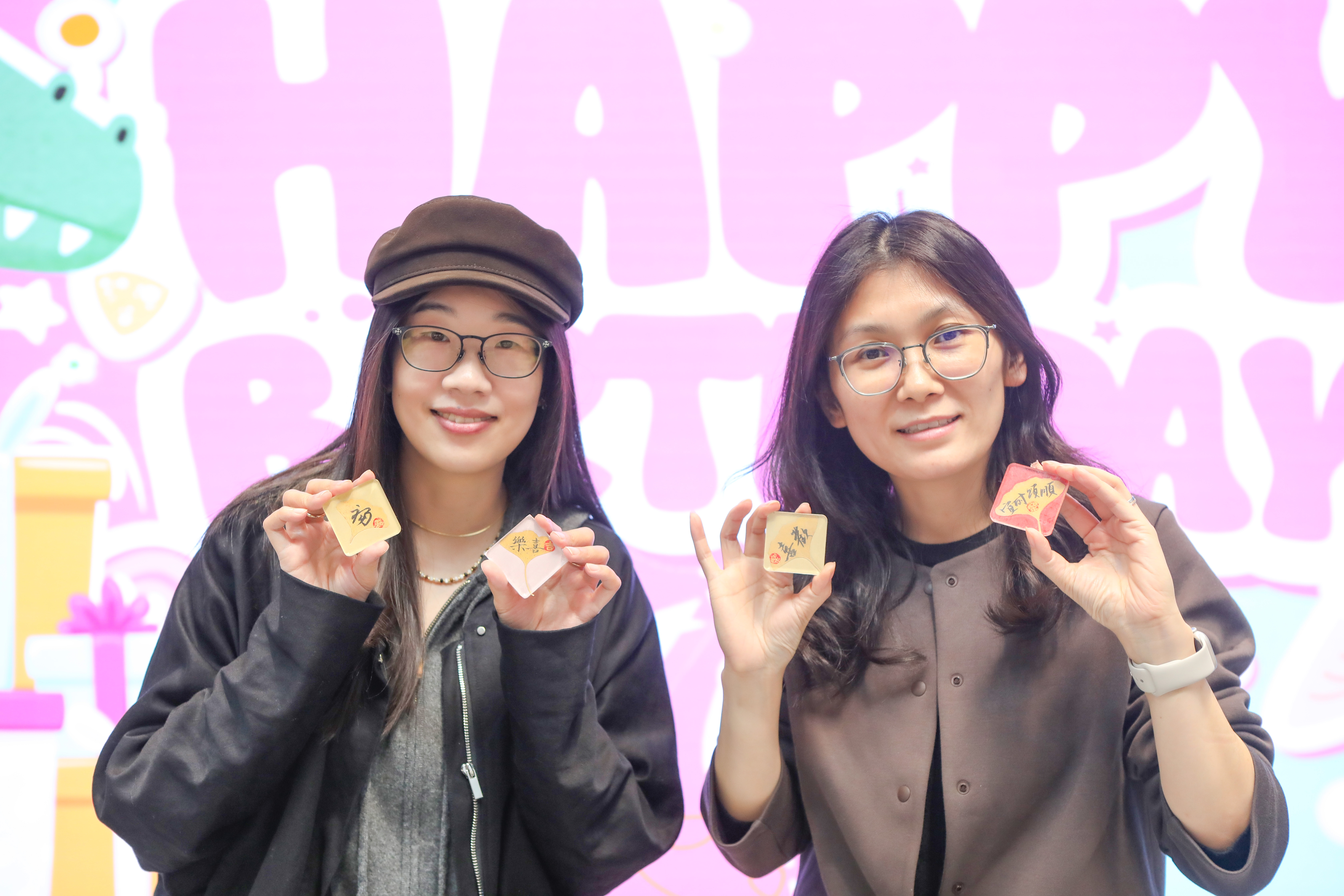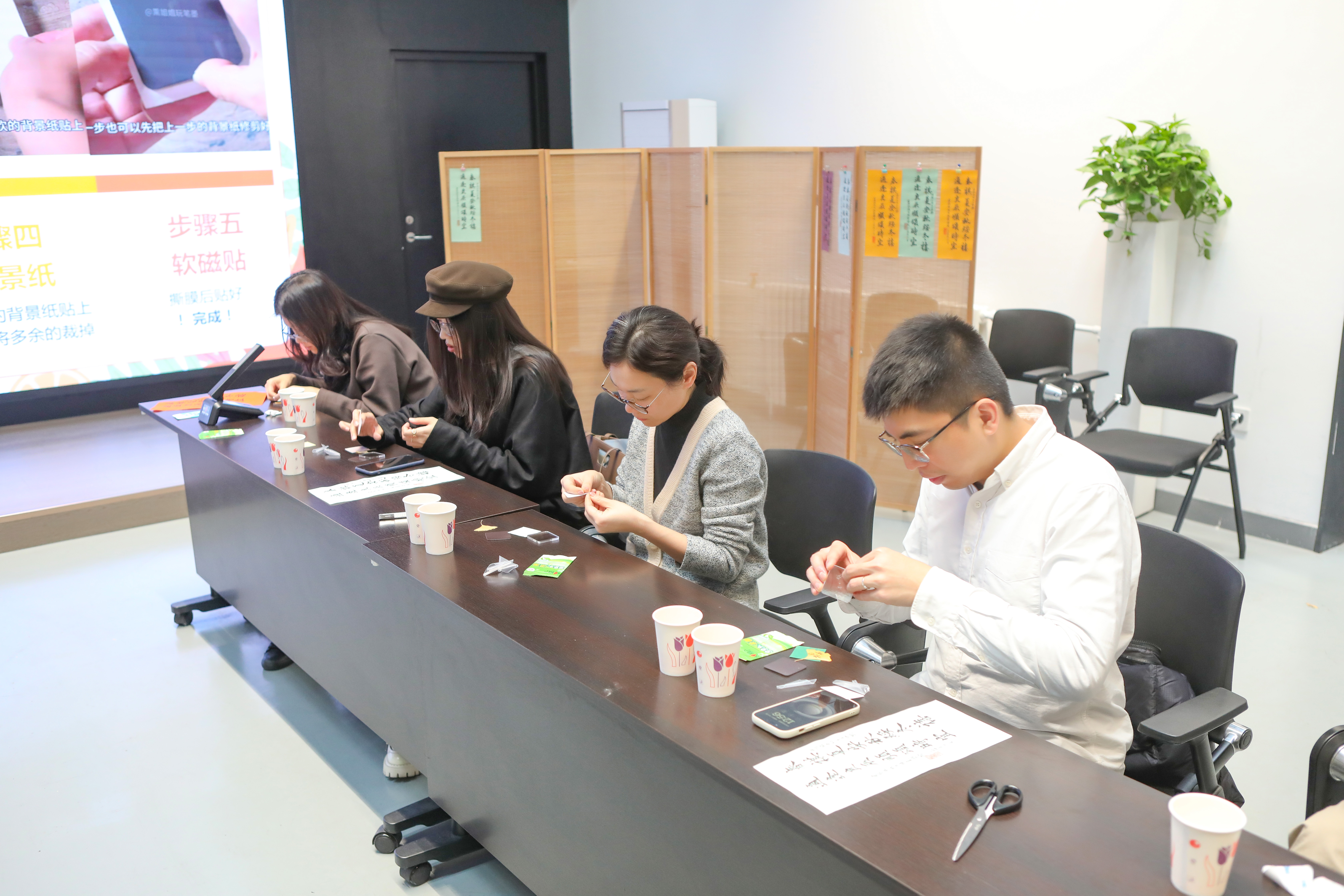 祝福仪式之后,我们迎来了生日会的特别环节——银杏叶冰箱贴制作。何立新书记、书法社学生成员在银杏叶上书写了对老师们的祝福。这一活动让老师们通过日常随手可得的材料,留住秋日浪漫,拥抱美好生活。大家在动手实践的过程中感受到手工制作的魅力和创造的乐趣,在心灵手作中度过了一个愉快的中午。