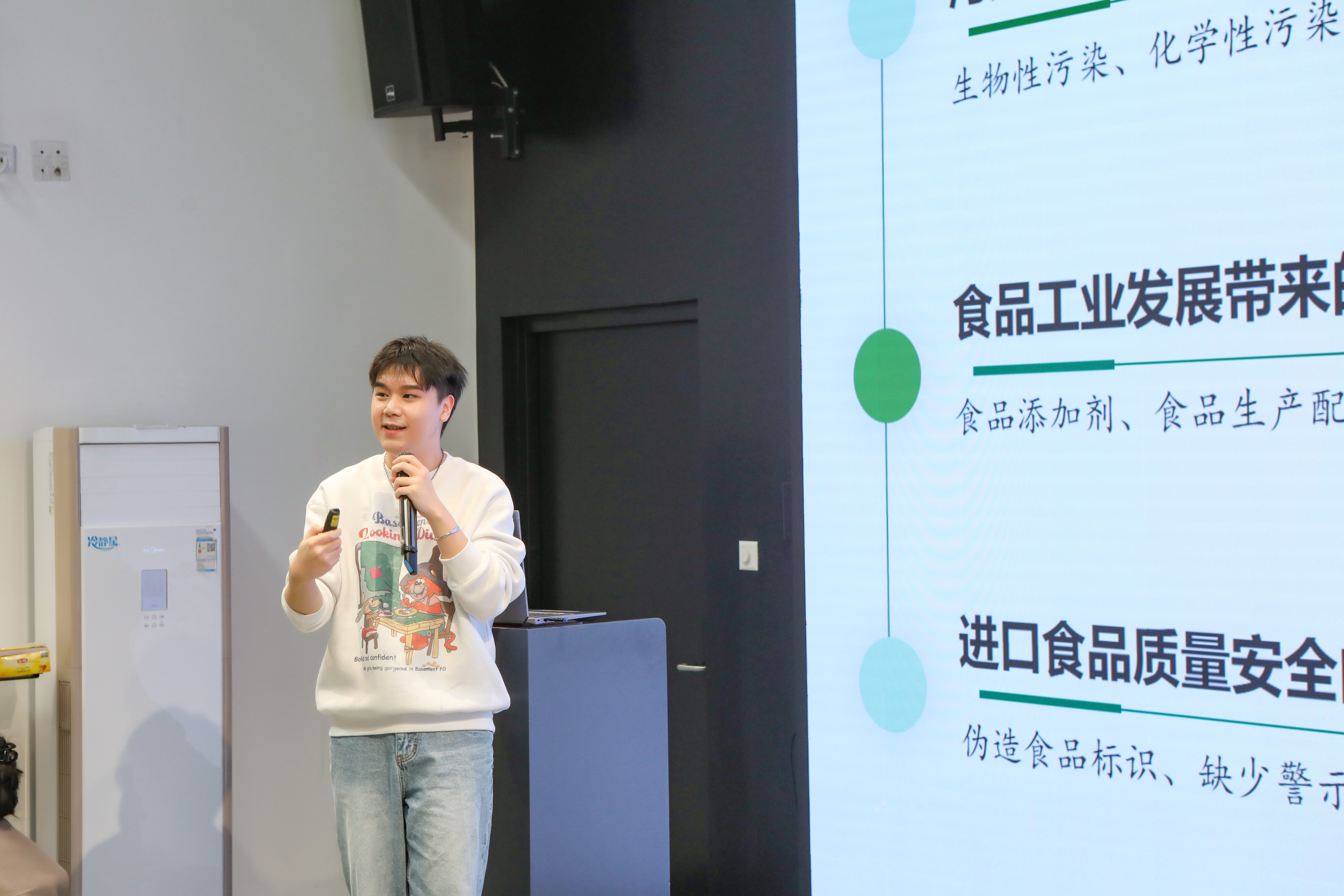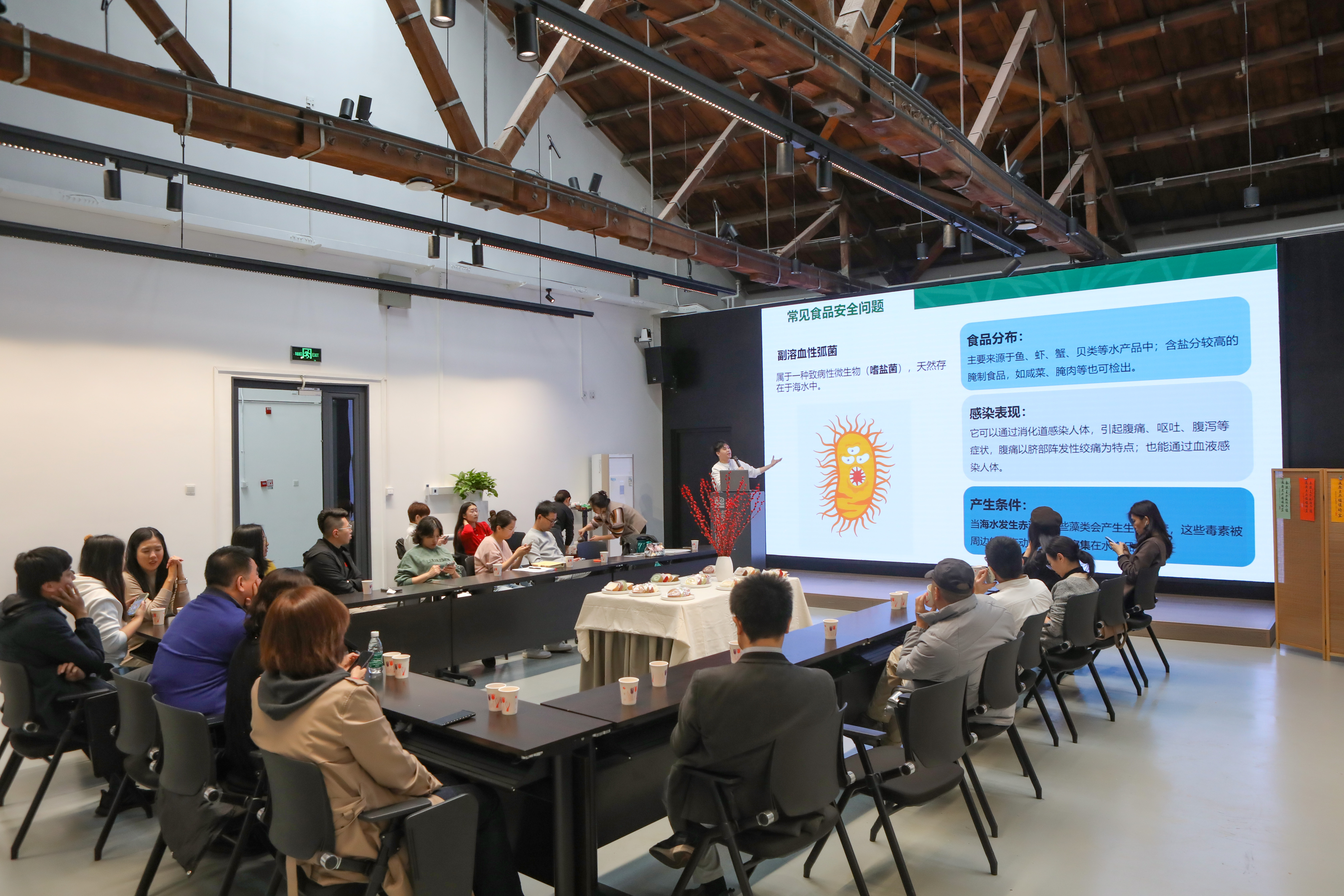 本次生日会的主题是“邂逅秋日、拥抱生活、享受健康”——改善饮食习惯,享受秋日浪漫。首先,陈子璇老师邀请北京林业大学“生音”研究生讲师团团长、“生态文明”博士生讲师团副团长邱皓溱进行《食得安全,食得健康》讲座,邱皓溱博士围绕常见的食品安全问题、如何对待食品安全两个方面做了深度介绍和分析,期间穿插贴近日常生活的互动问答,引发老师们的热烈互动讨论。