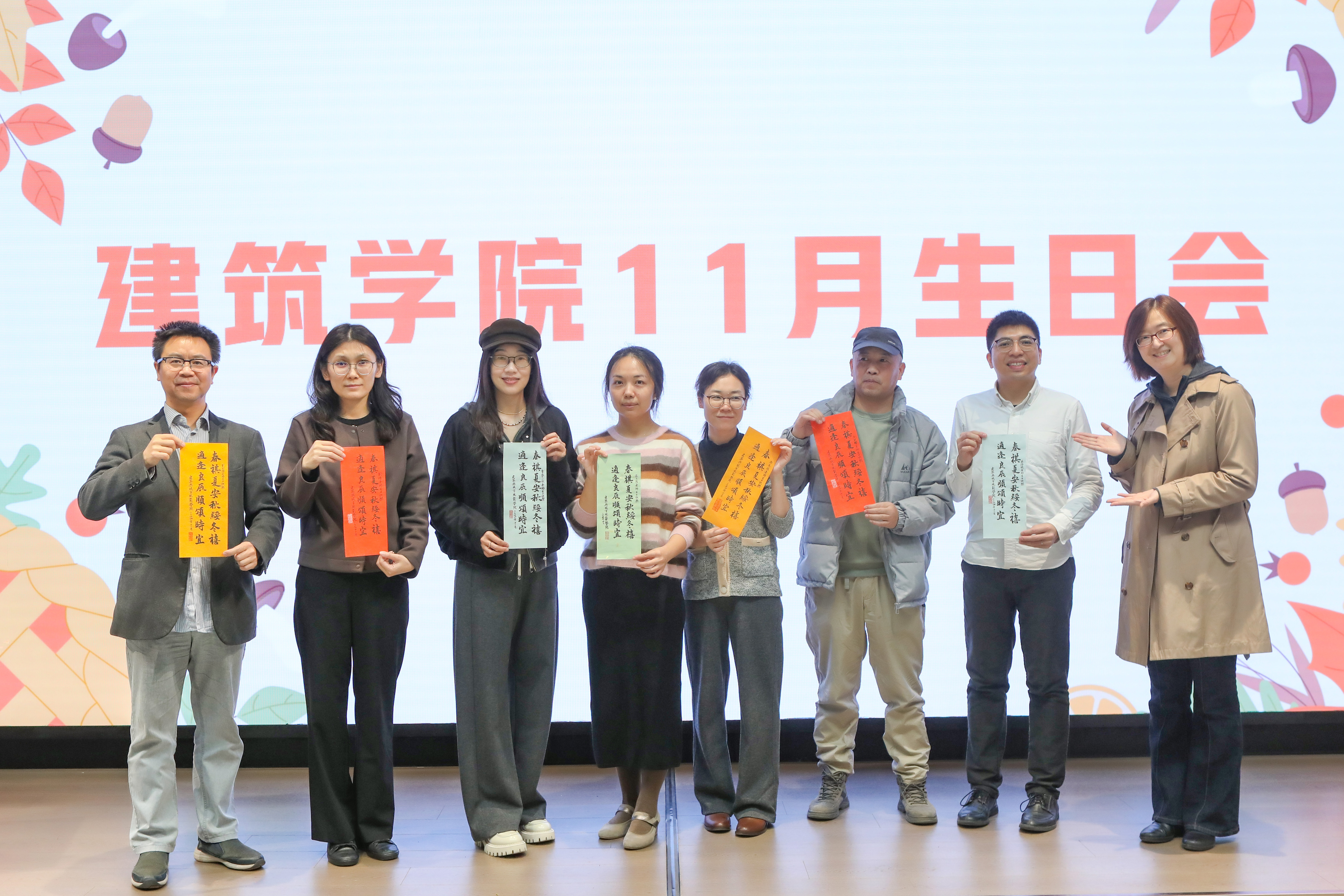 11月15日,努努影视 在教四201会议室成功举办以“邂逅秋日、拥抱生活、享受健康”为主题的十一月份教师集体生日庆祝会。努努影视 党委书记、分工会主席何立新,党委副书记分工会副主席曲杰,继续教育学院副院长田芳,学工教师和分工会小组组长代表参会,由辅导员陈子璇主持,建筑系俞天琦教授担任礼物赠送嘉宾,共同为7位庆生福星们送上生日祝福,分享美好时刻。