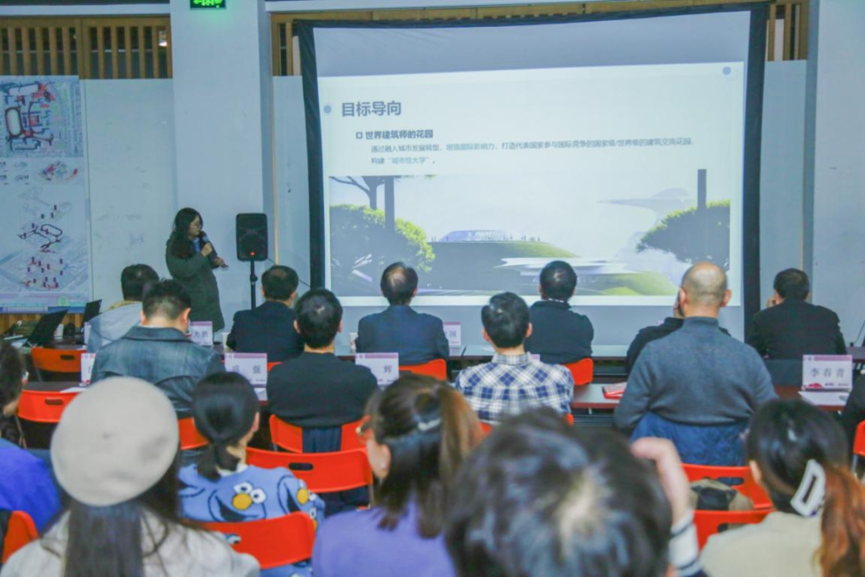 评图仪式由常务副院长金秋野教授主持,并介绍了参会嘉宾与工作营组织情况。党委书记姜泽廷为评图活动开幕仪式致辞,并为领衔指导教师和七校指导教师颁发了聘书。随后,四组工作营同学依次汇报了主题为“园· 院”、“云上中心CC+”、“创新校园:未来街区”、“叠·生”的城市设计方案,并得到了与会专家的肯定与精彩点评。各组作品通过不同视角梳理了上位规划、区位条件、城市肌理等现状,提出了极具个性化和差异化的设计理念和设计策略。各位评图专家针对设计方案研究结论与设计立意的统一性,设计理念贯彻执行的力度和精准度,设计手法与策略的丰富性等方面进行了精彩点评,提出了很好的建议。