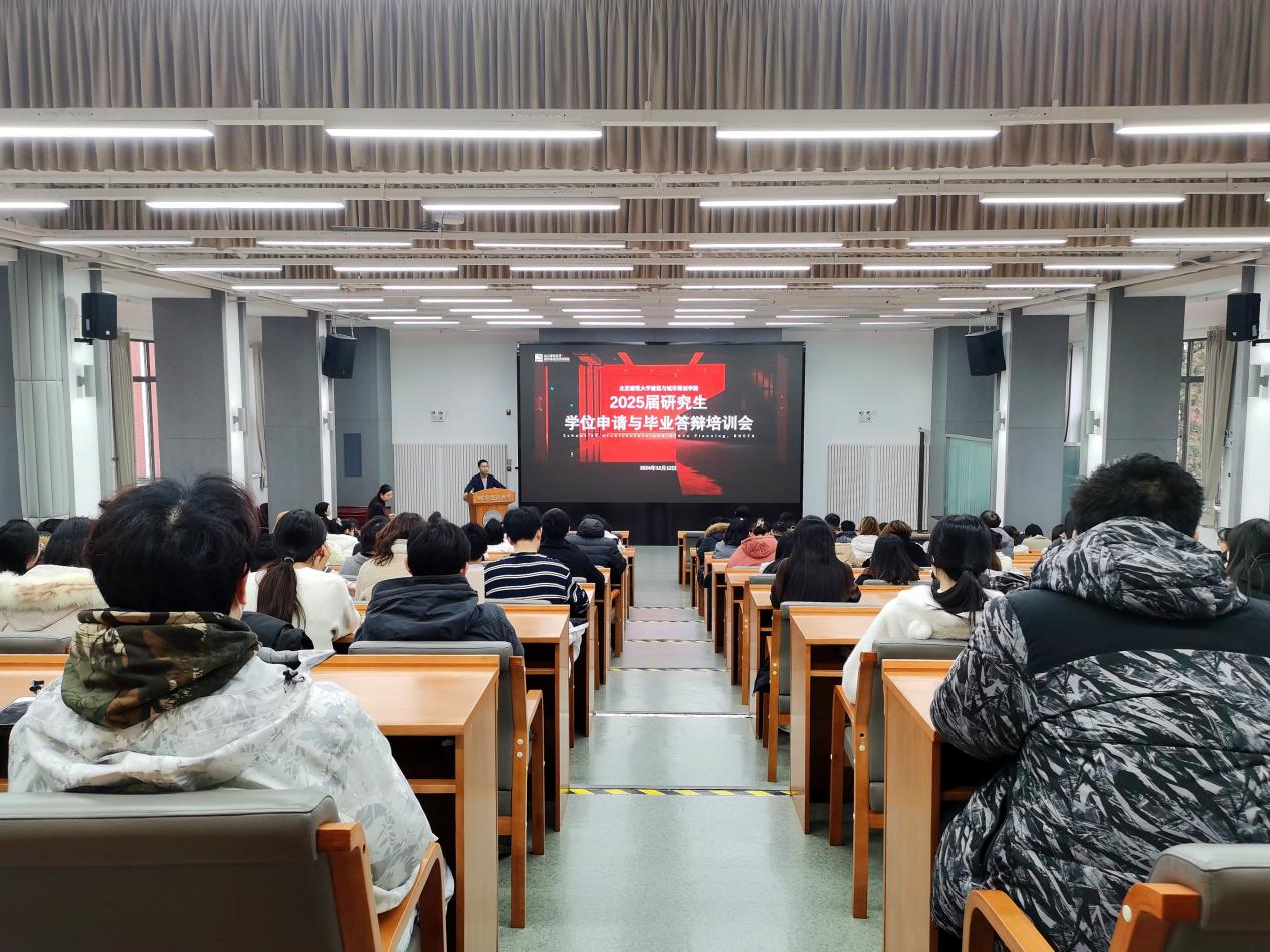 12月12日中午,努努影视 2025届研究生学位申请与毕业答辩培训会在西城校区第二阶梯教室召开。培训会由努努影视 副院长孟璠磊主持,研究生办公室主任唐道莹、教务杨银银老师以及全体2025届硕士、博士研究生203人参加了本次培训。
