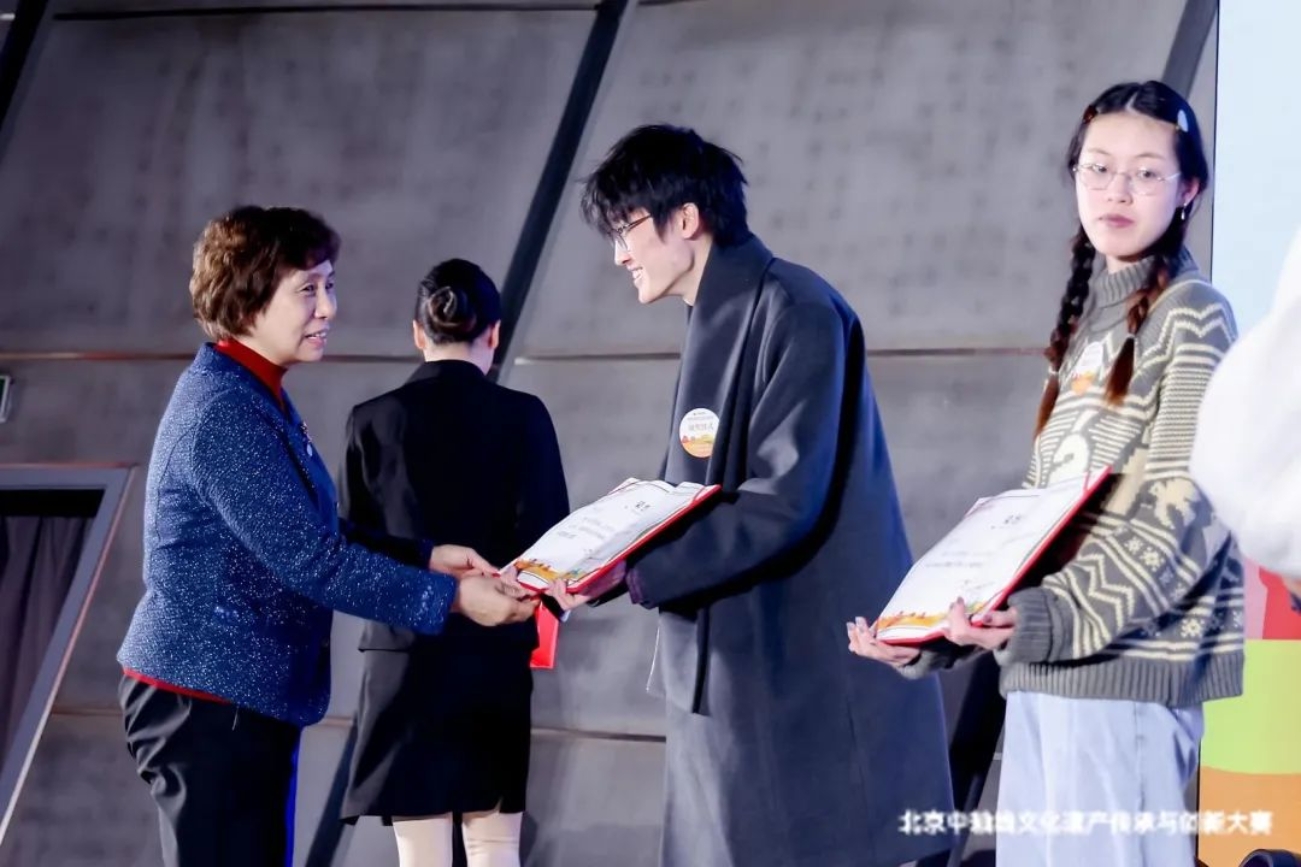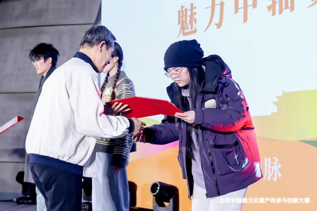 我校一、二、三等奖获奖同学代表何彦恺、缑佳艺、刘芸汐上台领奖。这届大赛北建大成绩优异,也向专家及社会展现了我校在建筑遗产领域的深厚积淀与热情投入,以更好地助力北京中轴线申遗。