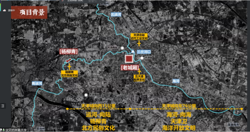 开题研讨会由开题介绍、开题交流、开题研讨三部分组成。首先,由出题方天津大学建筑设计规划研究总院谭啸所长对杨柳青大运河国家文化公园的项目背景进行了详尽介绍。2014年京杭大运河入选《世界遗产名录》,杨柳青作为沿运河两岸的“巨村“,承载了关于大运河南运河段的丰厚文化遗产与历史积淀。如今,大运河将作为国家文化公园重点建设项目之一,为运河文化的发展、运河两岸的活化利用提供了新的机遇。谭所长从杨柳青的历史脉络到民俗文化内涵,从非物质文化遗产、城乡建设、运河工程与自然环境等角度对运河进行多层次的文化解读,展现了运河文化“美的历程”。谭所长随后也对该地块已有的多轮设计进行简单介绍,如“以地文传承实现空间创作”、“文化学镇”等相关设计,为同学们对地块了解提供了更加开阔的视野。最后,谭院长结合已有工作提出了地块现状条件的详细信息与城市设计的刚性管控要求,如文物保护要求、核心保护区范围、建设地带的高度控制等等,并对本次联合毕设的成果表达期待与支持。