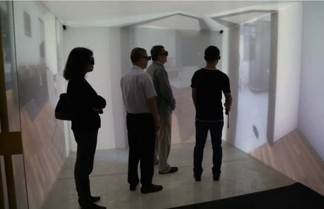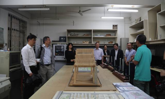 接下来,各位专家前往我校国家级建筑全过程虚拟仿真实验教学中心,在实验室杨振老师的介绍下,专家们戴上3D眼镜体验了在虚拟建筑中漫游的奇妙感觉。然后各位专家来到了学院模型工艺实验室,郎士奇老师为各位专家介绍了实验室的各种数控器材,其中当下最新颖的3D打印机吸引了各位专家的目光,专家们对3D打印机打印出来的建筑模型赞不绝口,同时也对器材配备提出高度评价。
