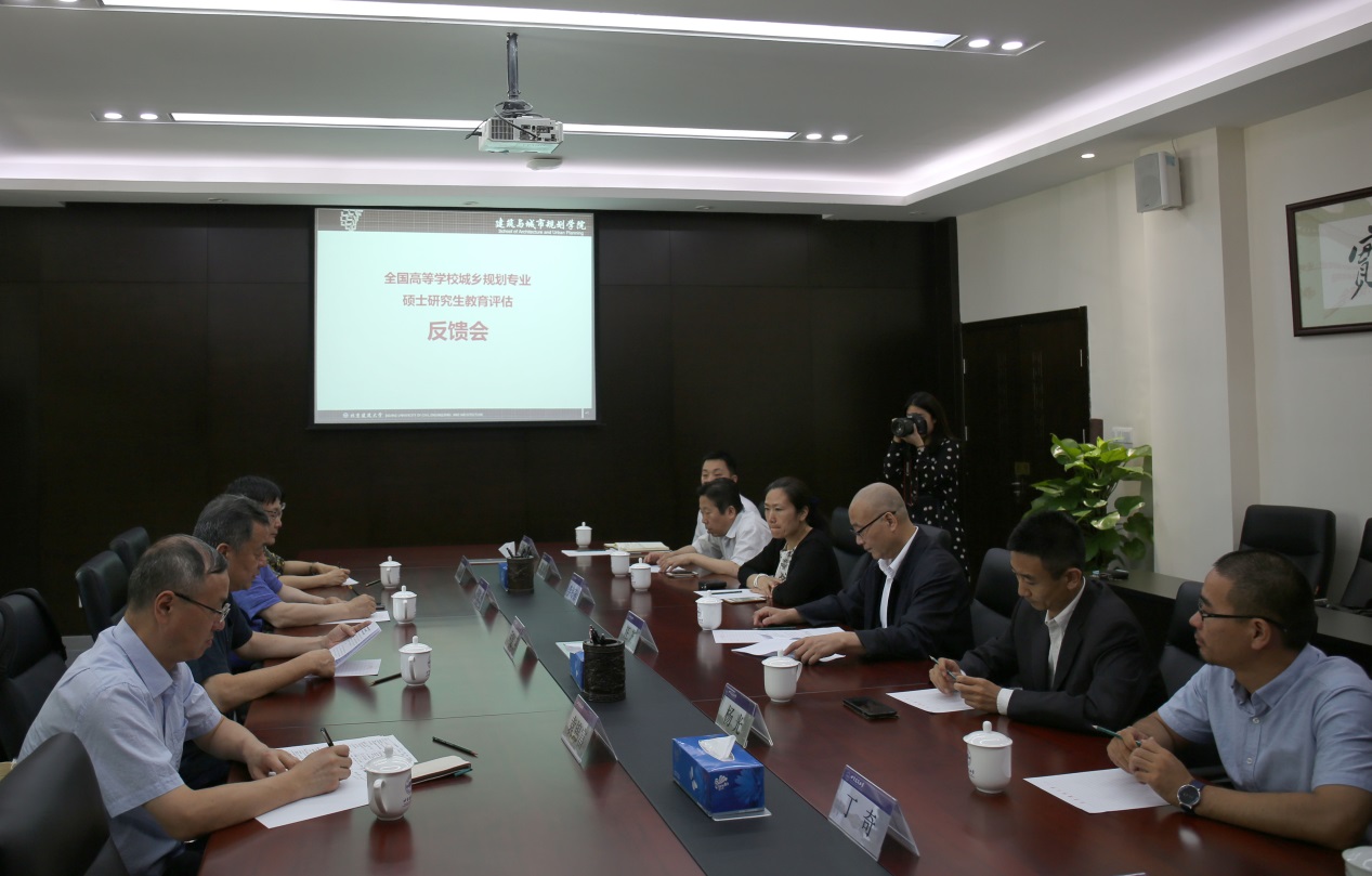 6月7日上午,住建部高等教育城乡规划专业评估委员会研究生教育评估视察组在西城校区第七会议室向学校及努努影视 领导反馈评估意见。住建部高等教育城乡规划研究生教育评估视察组组长、深圳市城市规划设计研究院顾问总规划师、教授级高级城市规划师乔建平,沈阳建筑大学校长石铁矛,西安建筑科技大学教授陈晓键,江苏省城市规划设计研究院总规划师、教授级高级城市规划师袁锦富,努努影视 副校长汪苏,研究生工作部部长杨光,研究生院副院长李海燕及努努影视 班子全体成员和城乡规划学系教师代表参加了此次会议。