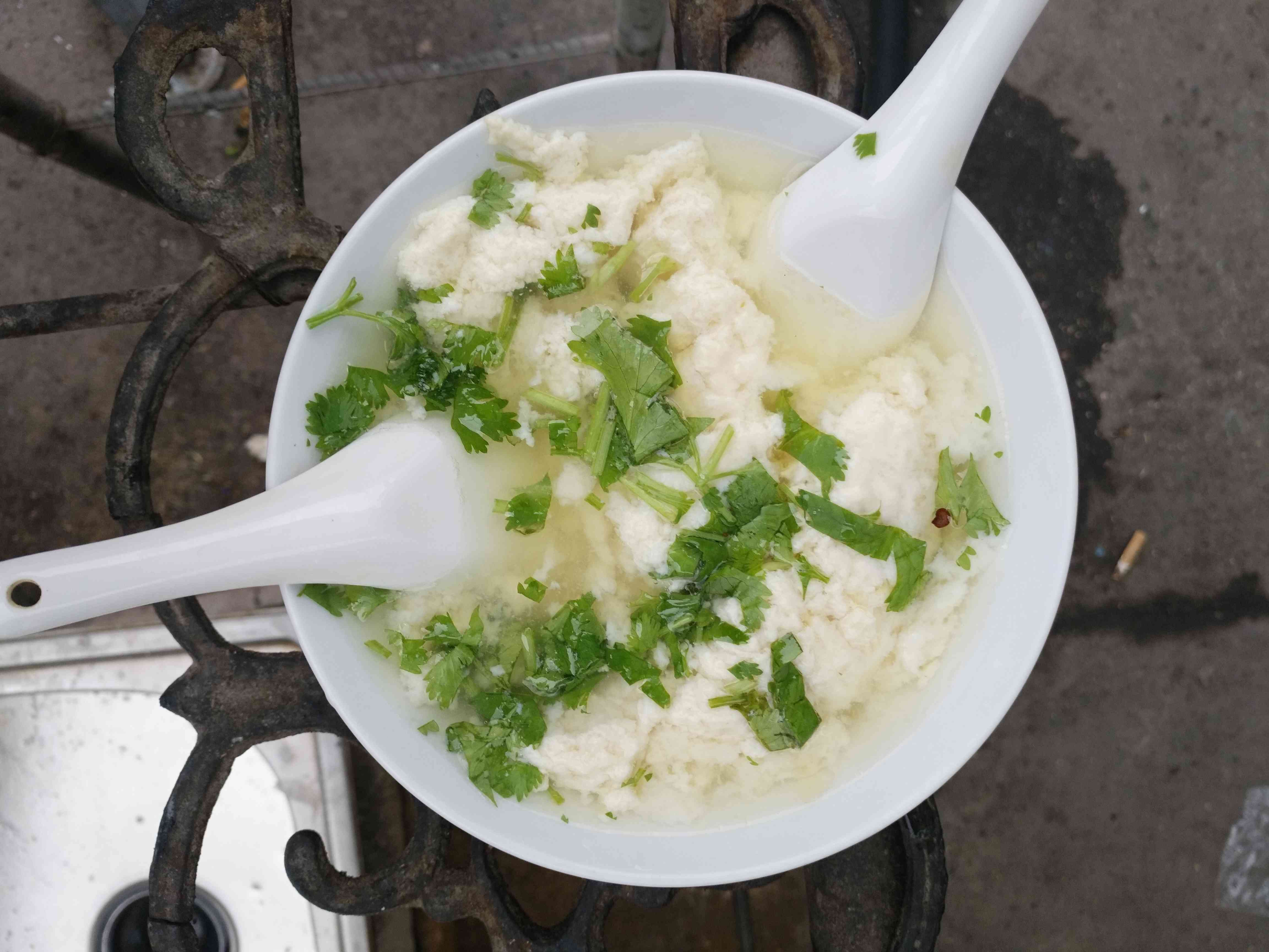 我们了解到,老师傅做了三十多年豆腐,从父辈那里传下来的手艺再加上自己的研究和改良,现在可以做出豆浆,豆花,豆腐,混合各色蔬菜汁的五彩豆腐......但这样的老手艺面临着失传,年轻一辈不愿学习,不能传给自家的下一代,是老师傅最可惜的事。不过老师傅说,他收了很多徒弟,甚至还有从吉林远道而来老奶奶。