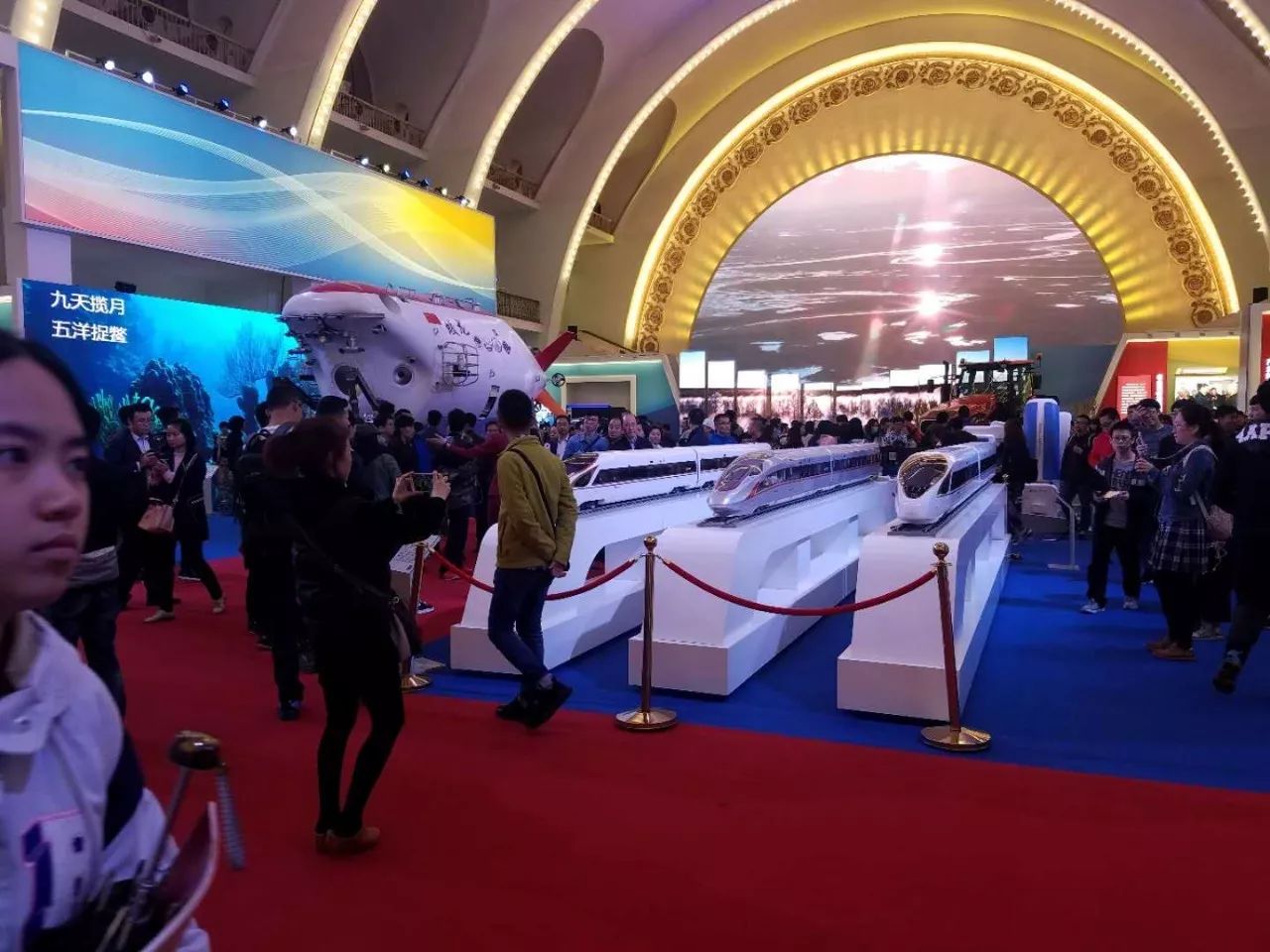 在此次展览中我们看到:北京的新机场即将凤凰展翅,平原百万亩造林工程带来片片新绿,城际铁路规划使京津冀越来越近……我们被这些闪亮的科技元素,创新的科技研究深深地吸引着。在为今日的科技发达震撼感叹之时,我们也为祖国过去这砥砺奋进的五年带来的大型成就感到自豪与欣慰。