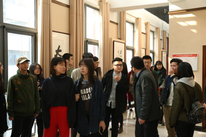 在参观完“北京高校师生作品展”以后,师生一行到首都师范大学校本部参观了由欧阳中石先生写的中华美德古训书法展,对中华传统美德古训进行了学习。