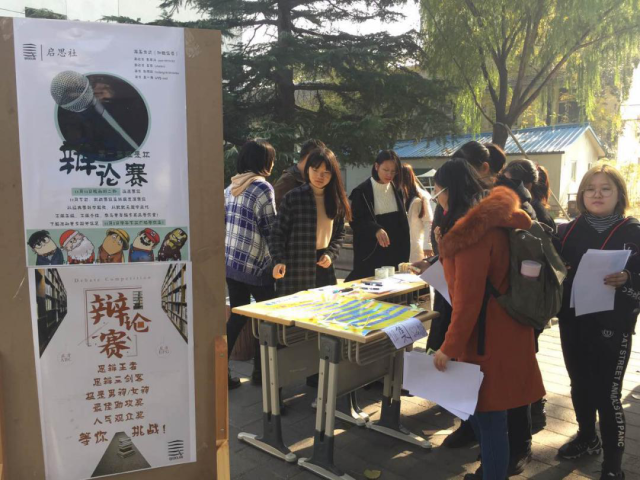 在辩论宣传活动中,围绕党的十九大内容,开展辩题征集、绕口令、恐怖箱等益智活动,旨在引导学生在认真学习领会党的十九大精神后提出有趣的辩题,激发学生锻炼口才和自我提升的热情……通过一些列宣传及动员活动,使同学们积极踊跃纷纷参与到辩论赛活动中来。