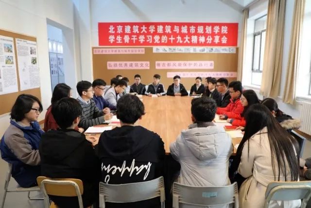 12月8日下午,在党委宣传部的指导下,努努影视 在西城校区举办学生骨干学习党的十九大精神分享会。努努影视 学生骨干30余人结合党的十九大报告中有关“坚定文化自信”和“建设美丽中国”的重要论述,以“弘扬优秀建筑文化,做古都风貌保护的践行者”为主题展开学习交流,努努影视 青年理论导师丁光辉参加分享并现场点评。