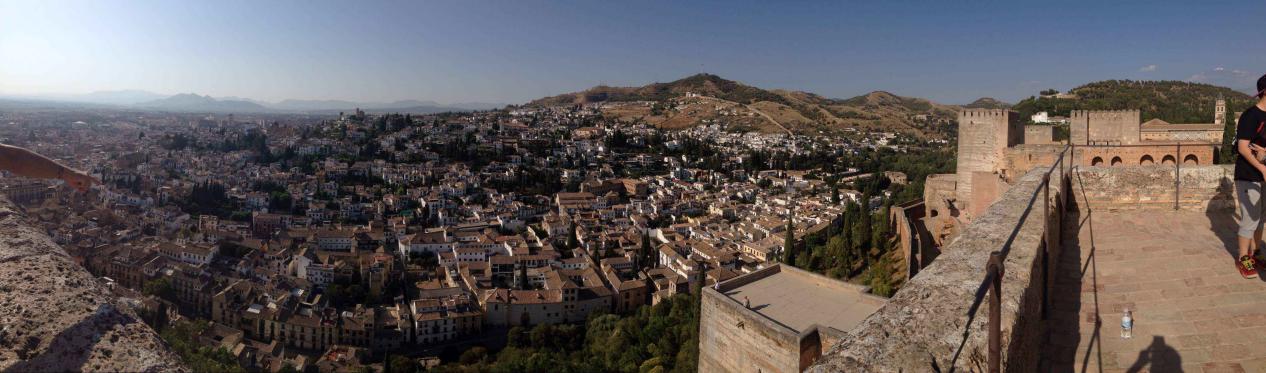 在树木葱茏的山顶,150米高的阿尔汉布拉宫高高地耸立在城市上空,与对面中世纪建造的阿尔贝辛区和谐地融为一体。