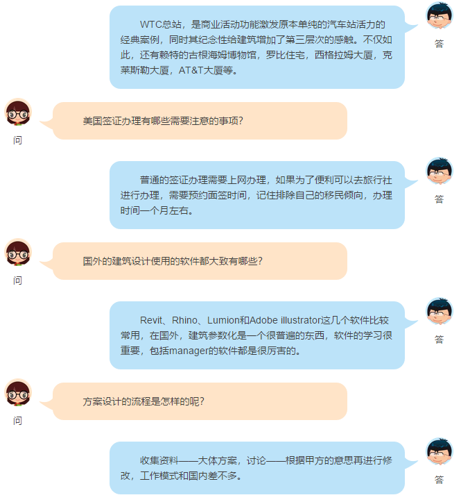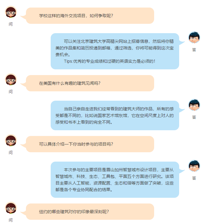 薛曹阳同学首先介绍了参与这个海外实习计划之前自己在学习、语言方面做的准备工作,以及去美国之前对住宿、通讯、签证、交通等方面做的各方面考虑。随后,介绍了AECOM公司令人神往的工作模式,其中她回忆到:在公司里面实施无上下等级的工作模式,人人可提出自己见解,各自发挥自己的优势,为项目投入最大的热情;就算是新人也可以了解到各个项目的进展情况;面对他人的疑难问题,就算再忙公司员工都会耐心指导;灵感的交流不拘泥于场所,在任何地方都可以进行讨论与交流。让她感受到了被尊重与存在感,最后,她也介绍了她在美国的建筑与风土人情的考察之旅。