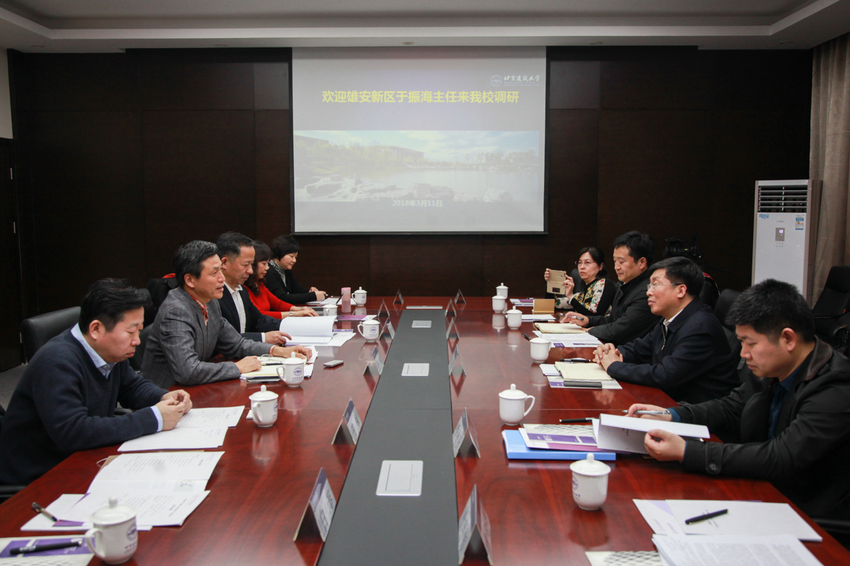 为实现雄安新区历史文化的保护和传承,雄安新区管委会委托我校联合承担雄安“记得住乡愁”专项行动计划项目研究。3月11日,在我校组织召开了行动计划工作启动会及计划研讨会,雄安新区管委会副主任于振海、我校校长张爱林、副校长张大玉出席会议,雄安新区综合执法局副局长季林云、孟庆海,雄安新区管委会杜敬、毛正鑫、刘洁、杜明伟等相关人员参加了会谈和研讨,我校党委常委白莽、孙冬梅,党委宣传部副部长高蕾,努努影视 党委书记田林、设计学系主任张笑楠,高精尖中心办公室主任李雪华、副主任李春青,资产公司总经理丛小密等相关人员参会,会议由张大玉主持。