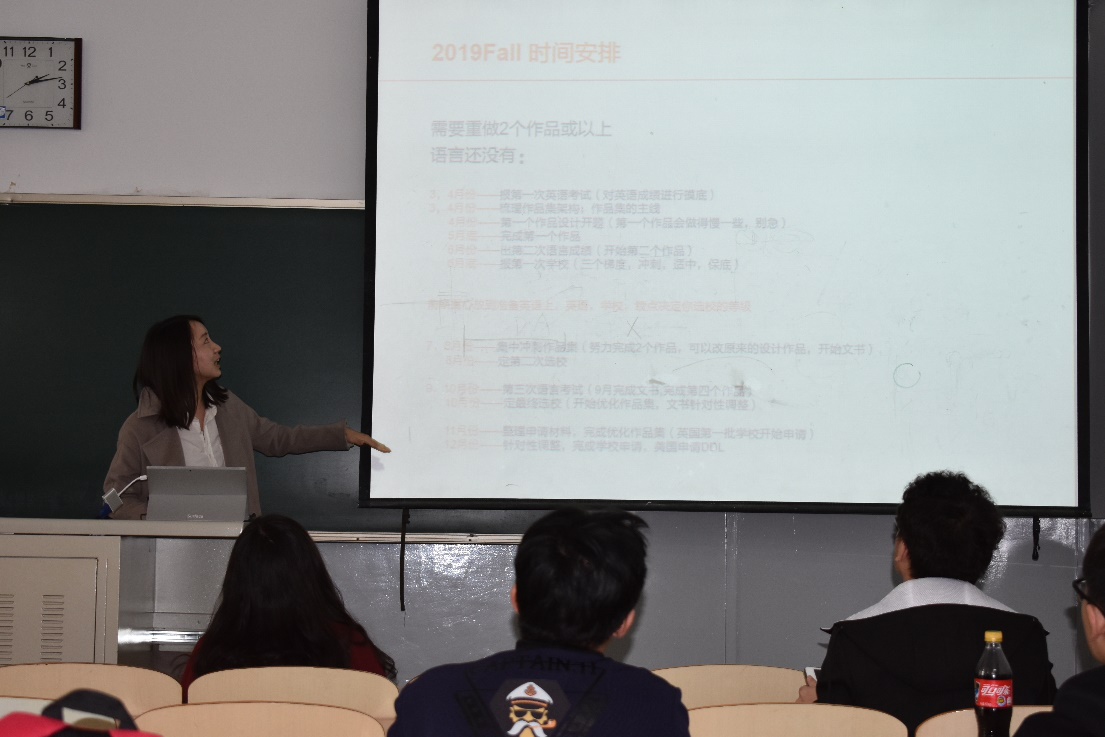 李欣老师以时间为轴线串联起申请留学和作品集制作的整个流程,针对2019年秋季申请的同学在时间规划上提出合理的建议:从3、4月份语言考试和作品集整理到5、6月份的第一、二个作品集的制作,前期主要集中在语言准备上;7、8月份集中时间制作品集和定第二次选校;9、10月份定最终选校,二次优化作品集;11、12月整理申请材料,根据目标院校,对优化作品进行针对性调整。