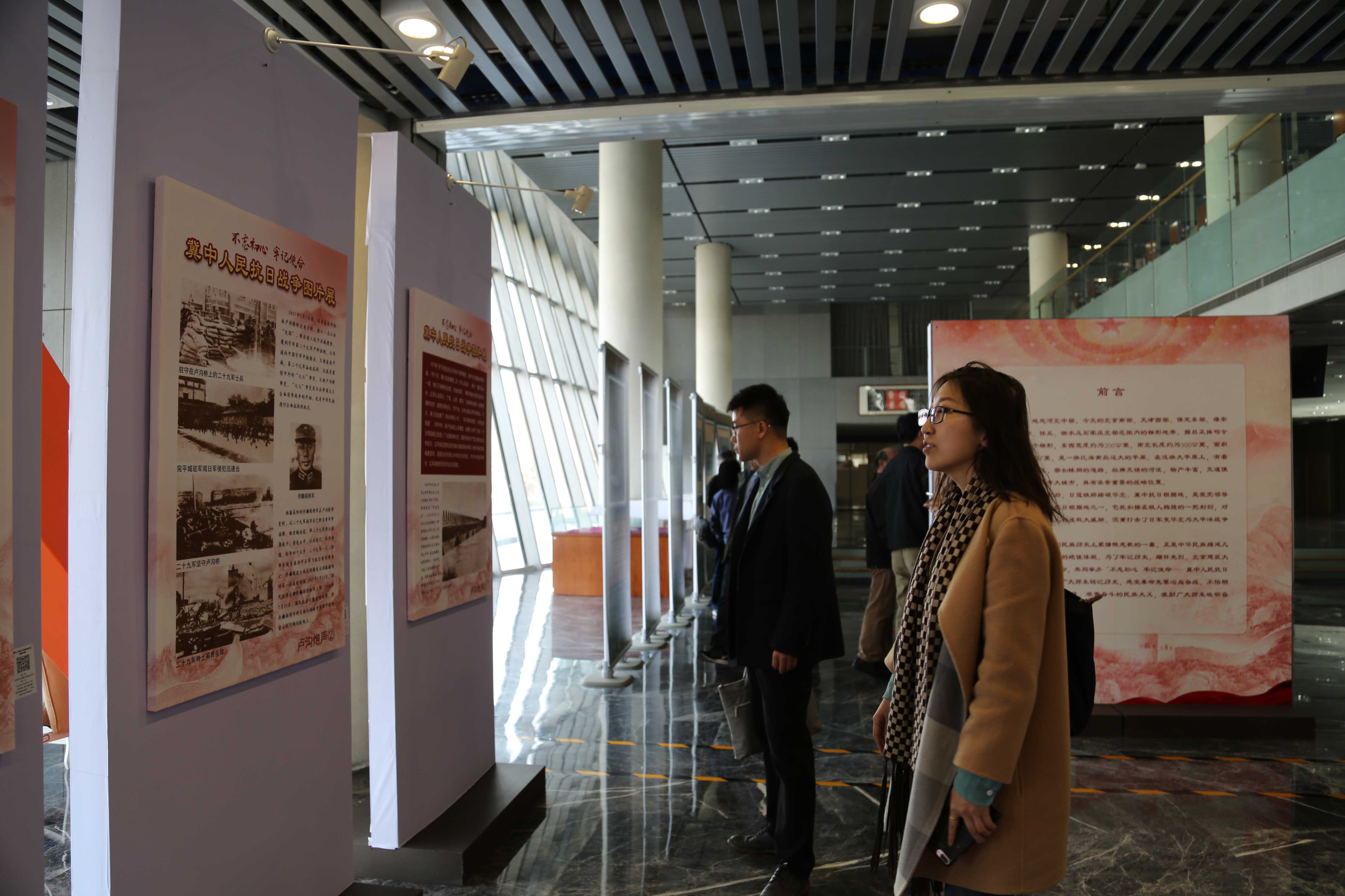 4月10日下午13:00,努努影视 党委、院工会组织全体教师到大兴校区图书馆参观“冀中人民抗日战争图片展”。