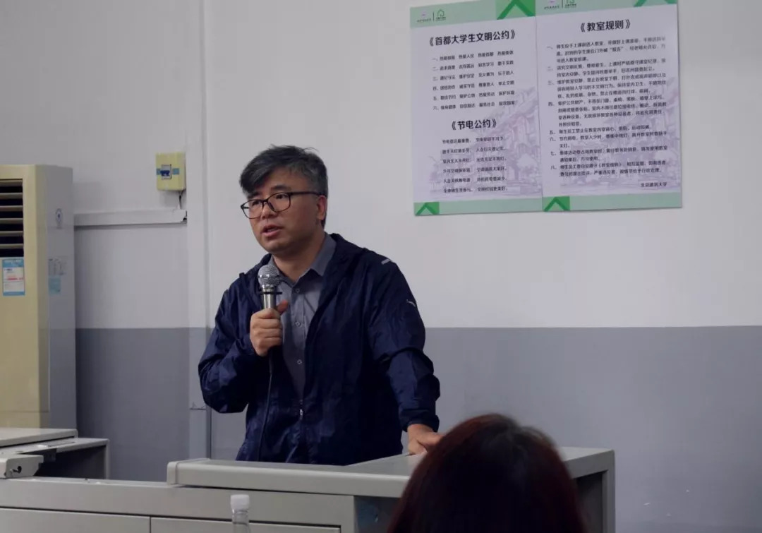 随后,课程负责老师晁军老师分享了课程经验,大四是同学们学生生涯的关键,希望同学们多跟老师交流。中国建筑标准设计研究院北京分院许彦淳工作室主任许彦淳建议同学们注重创造,而不是拘泥于规范。副院长欧阳文代表学校向校友表示衷心感谢,感谢他们把对学校、学院的爱传承下来。随后,中联环工程设计有限责任公司总建筑师赵敏表达了自己对2015级同学的期望,告诉大家要重视自己的专长,重视设计的创造力。最后,远洋地产设计研究院院长窦志告诉同学们“只想当下,不去看未来,当下一定走不好”,要坚持“诗和远方”。