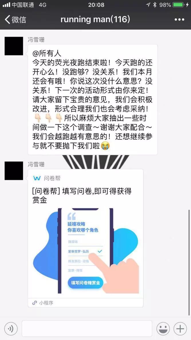 夜跑活动结束后,夜跑社在群里发布 了有关夜跑改进的调查问卷。同学们积极参与,让我们了解到了这次活动的优点和不足。所有填写调查问卷的同学表示,依旧会参加下一次荧光夜跑活动。我们在朋友圈看到同学们对荧光夜跑的热情,是我们继续组织活动的动力!