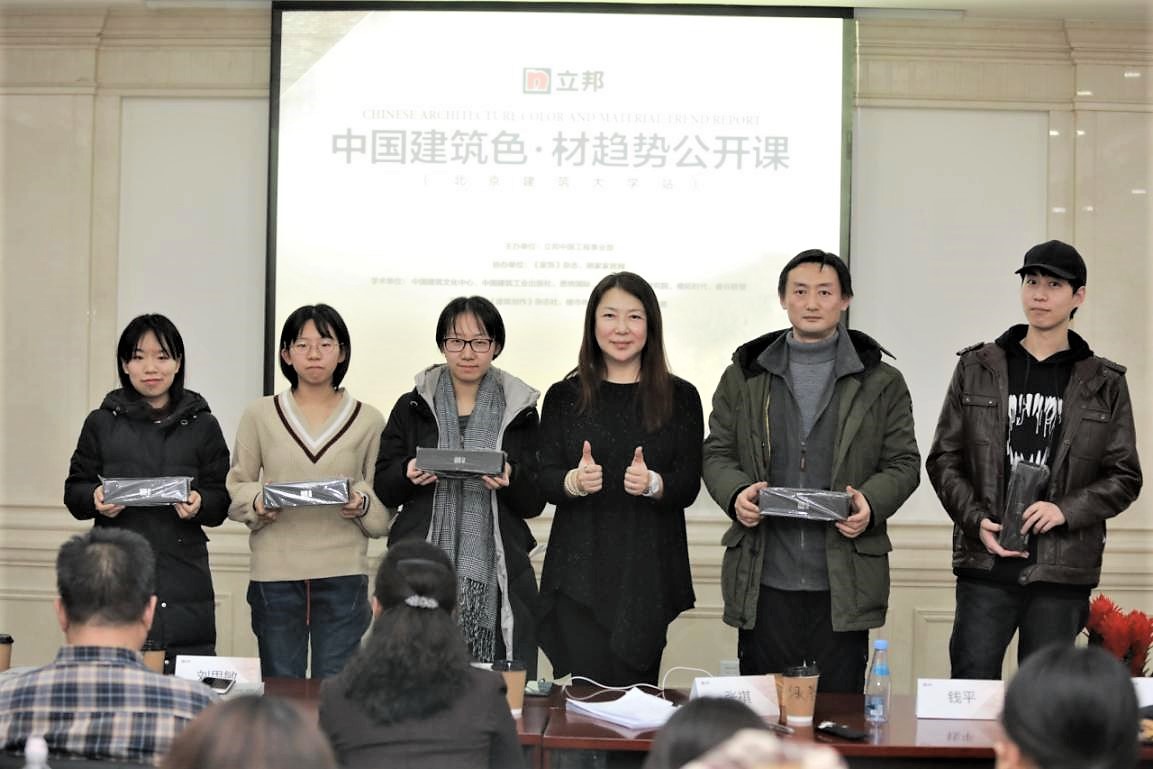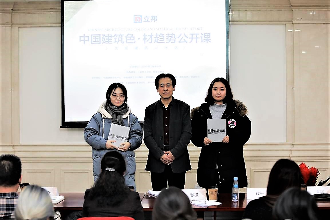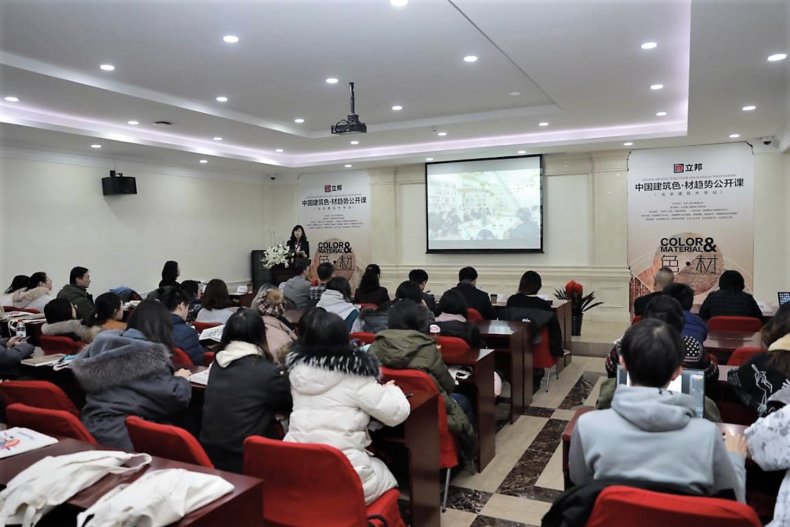 2019年1月10日,由我校承办的中国建筑色·材趋势公开课活动正式举办,本次公开课由我校努努影视 设计学系副教授滕学荣主持,出席嘉宾有国家建材大数据研究中心秘书长刘思敏先生、副秘书长张永建先生、北京建工建筑设计研究院副院长王玥副院长、《中国建筑色·材趋势报告》执行主编、悉地国际设计副总裁钱平先生、中国建筑设计研究院总建筑师张祺先生、《中国建筑色·材趋势报告》执行副主编尤斌女士、努努影视 建筑与城规学院杨琳副教授、北京师范大学艺术与传媒学院李嫣副教授、《家饰》杂志主编米姝玮女士等。立邦工程事业部的专家们发表致辞,带来了精彩的演讲,与在场近一百多名师生共同回溯中国当代建色·材历史,解析建筑色彩密码,探讨建筑设计思考与实践。