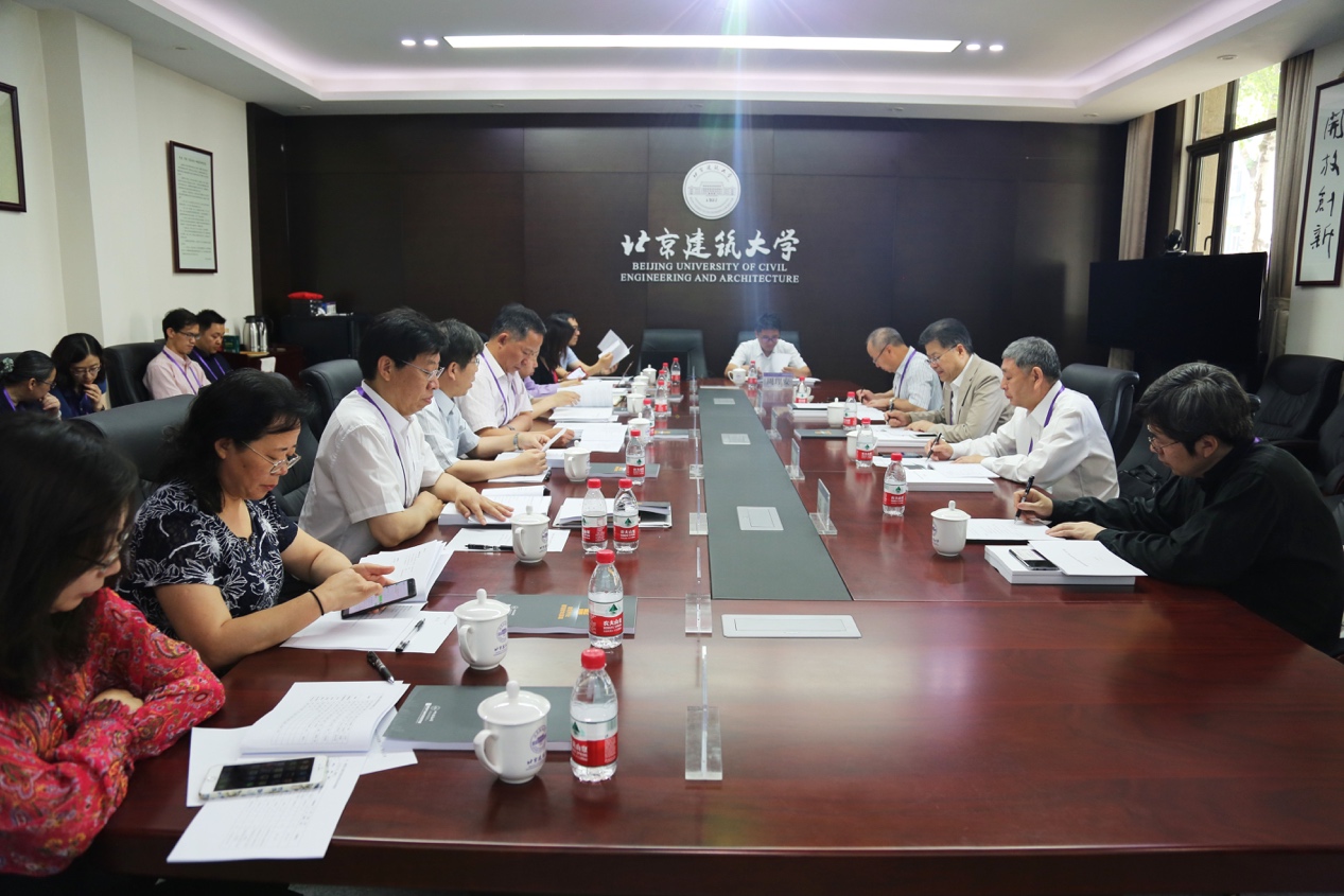 汇报会的第二阶段由专家组组长丁建正高级工程师主持,由张大玉副校长向专家组做了建筑学专业(学科)评估汇报。张大玉副校长从我校建筑学专业(学科)的校院概况与专业历史、专业目标与培养理念、培养方案与教学改革、师资队伍与教学资源、学生发展与质量评价、办学经验和专业特色、对上次评估反馈意见的回复、薄弱环节与改进措施等方面进行了详细汇报。丁建正高级工程师及各位专家认真听取了汇报,就报告内容和与会校院领导及教师进行了交流。张爱林校长在汇报会前看望了评估专家。学校领导和与会人员一起合影留念。