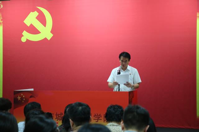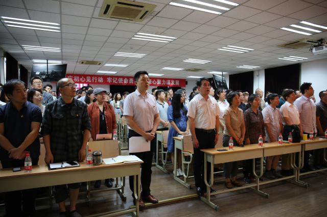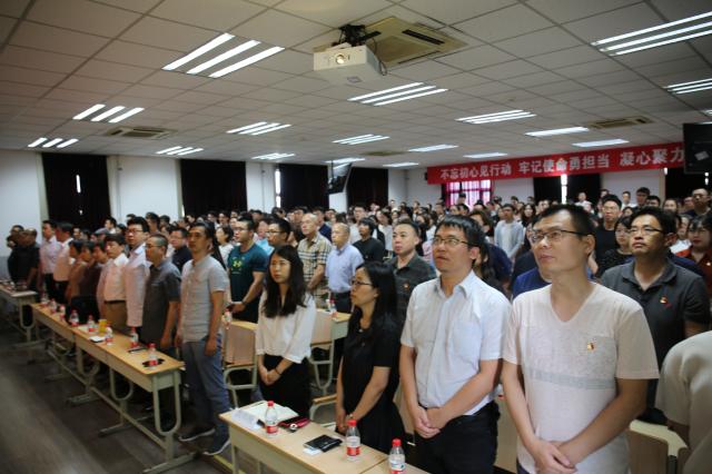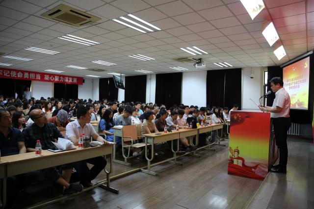 党委书记何立新同志给全体党员讲党课,党课题目为《不忘初心见行动,牢记使命勇担当,凝心聚力谋发展》。何书记结合学院现状,围绕“不忘初心,坚定信念跟党走;牢记使命,乘势而上勇担当;永远奋斗,解放思想再出发”三个方面进行论述。