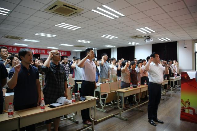 学院党委书记何立新同志带领全体党员重温入党誓词,全体党员举起右拳面向党旗庄严宣誓。